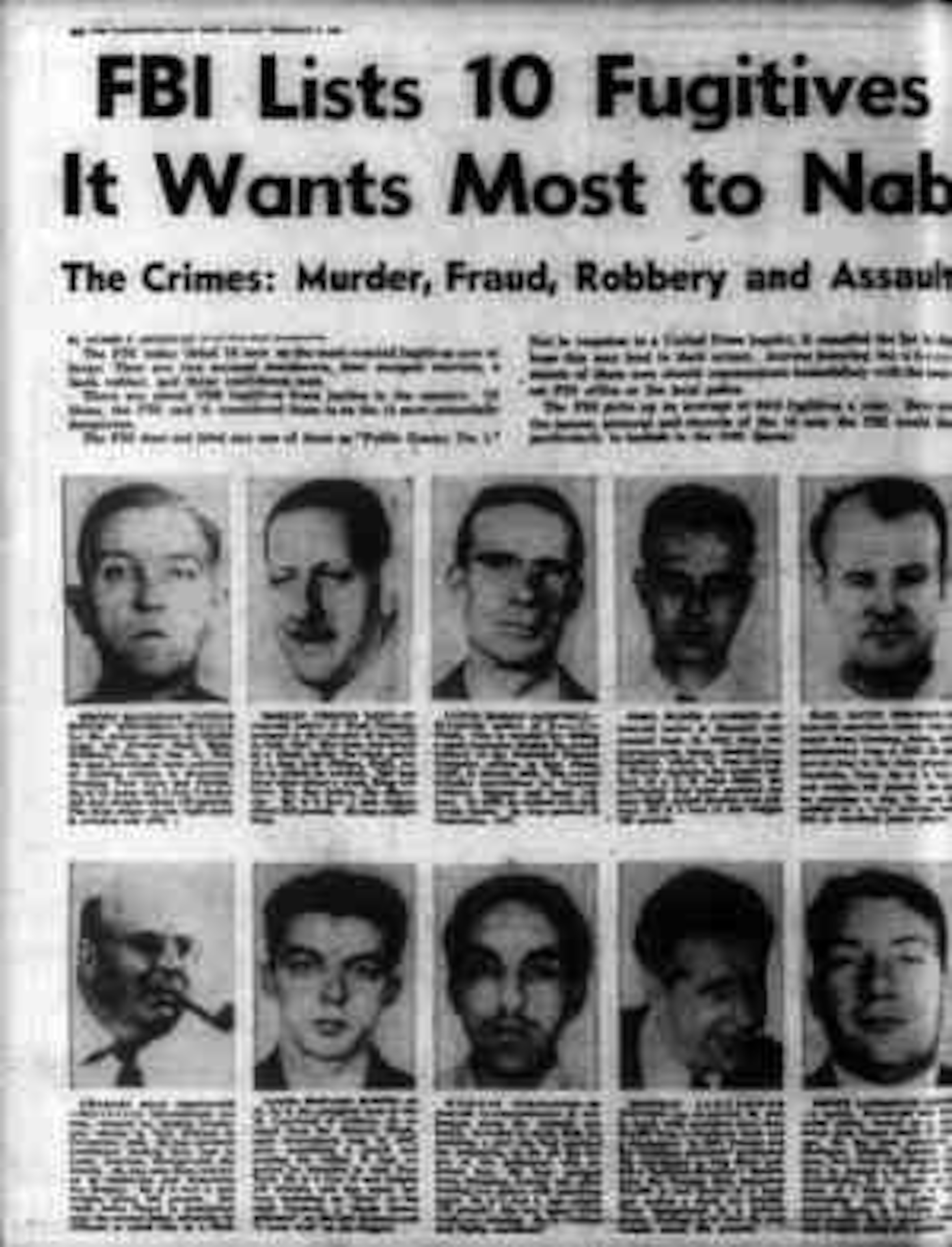 Photo: "The Washington Daily News" Ten Most Wanted page, courtesy of the Newseum