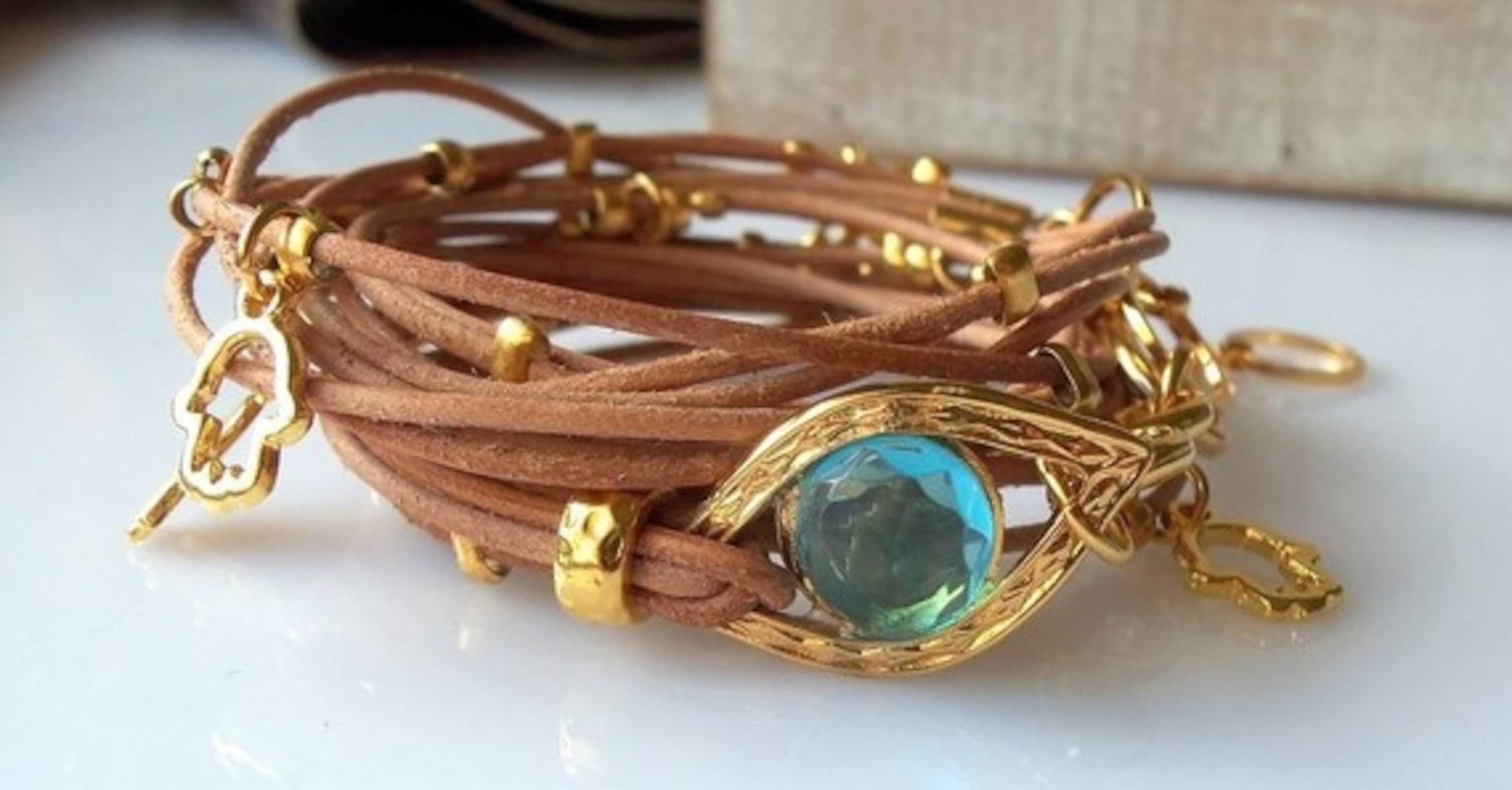 I tend to fall prey to bad luck when I travel and have been collecting the native good luck charms of the places I visit to counter that luck. I also love buying from local shops and main street boutiques, instead of box stores, so this leather hamsa bracelet on Etsy fits all my needs. The little golden hamsa charms are a Middle Eastern symbol