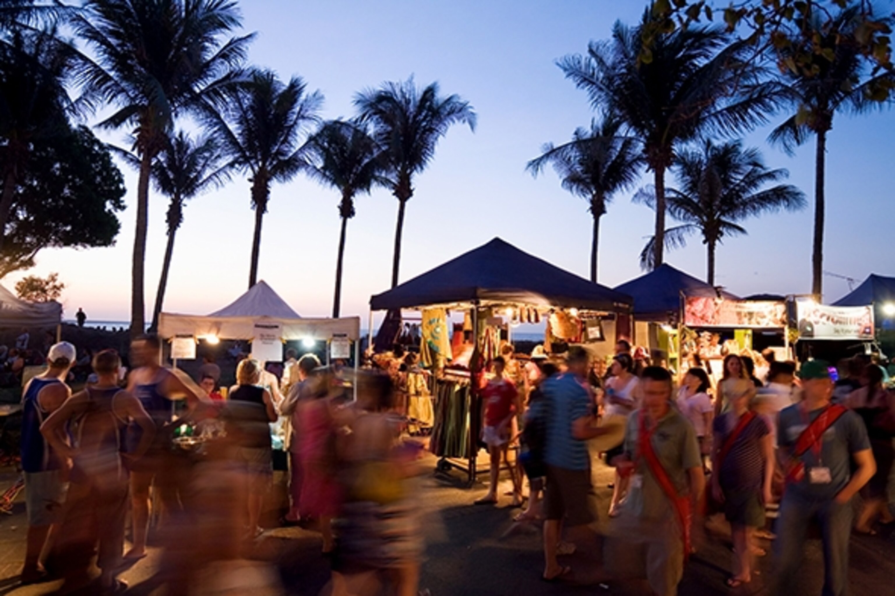 The best outdoor market in my city is Mindil Beach Sunset Market, which fronts Mindil Beach. Each Thursday and Sunday night, parking spaces becomes highly coveted as residents and tourists pile in to sip fresh juices and deliberate over dinner options from the seemingly endless stretch of food stalls (many of which offer Southeast Asian cuisine). For a taste of local flavor, look for the Aussie Burgers and Hotdogs stall, which sells barramundi, crocodile, and buffalo burgers.