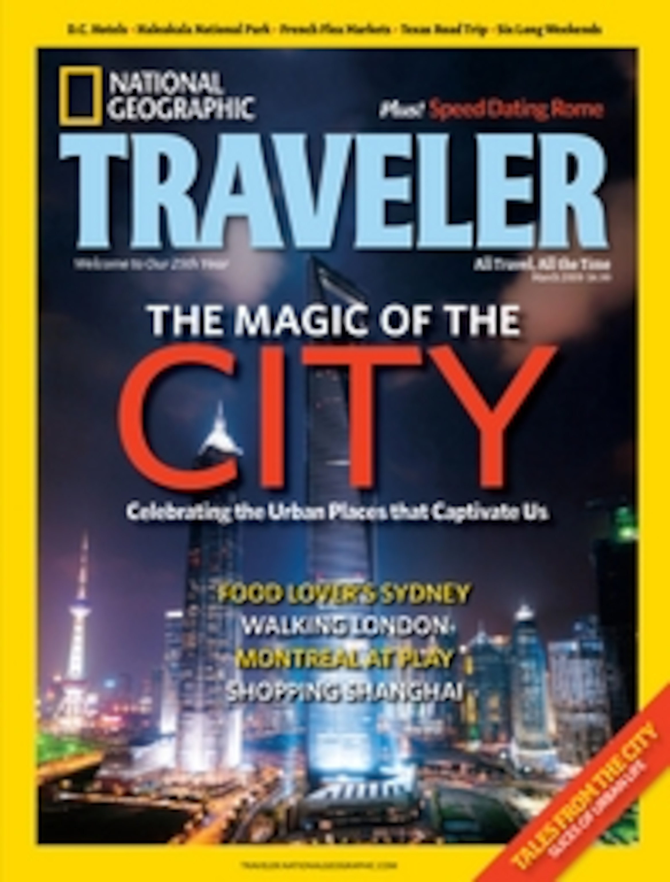 National Geographic Traveler’s March issue explores the Magic of the City: Celebrating The Urban Places that Captivate Us. We sent four writers to four very different cities to sample the best shopping in Shanghai, eating in Sydney, walking in London, and playing in Montreal. Then we got 29 of our writers, photographers, and other consummate travelers to share their favorite urban places. But we’re not done yet. We want to hear from you.