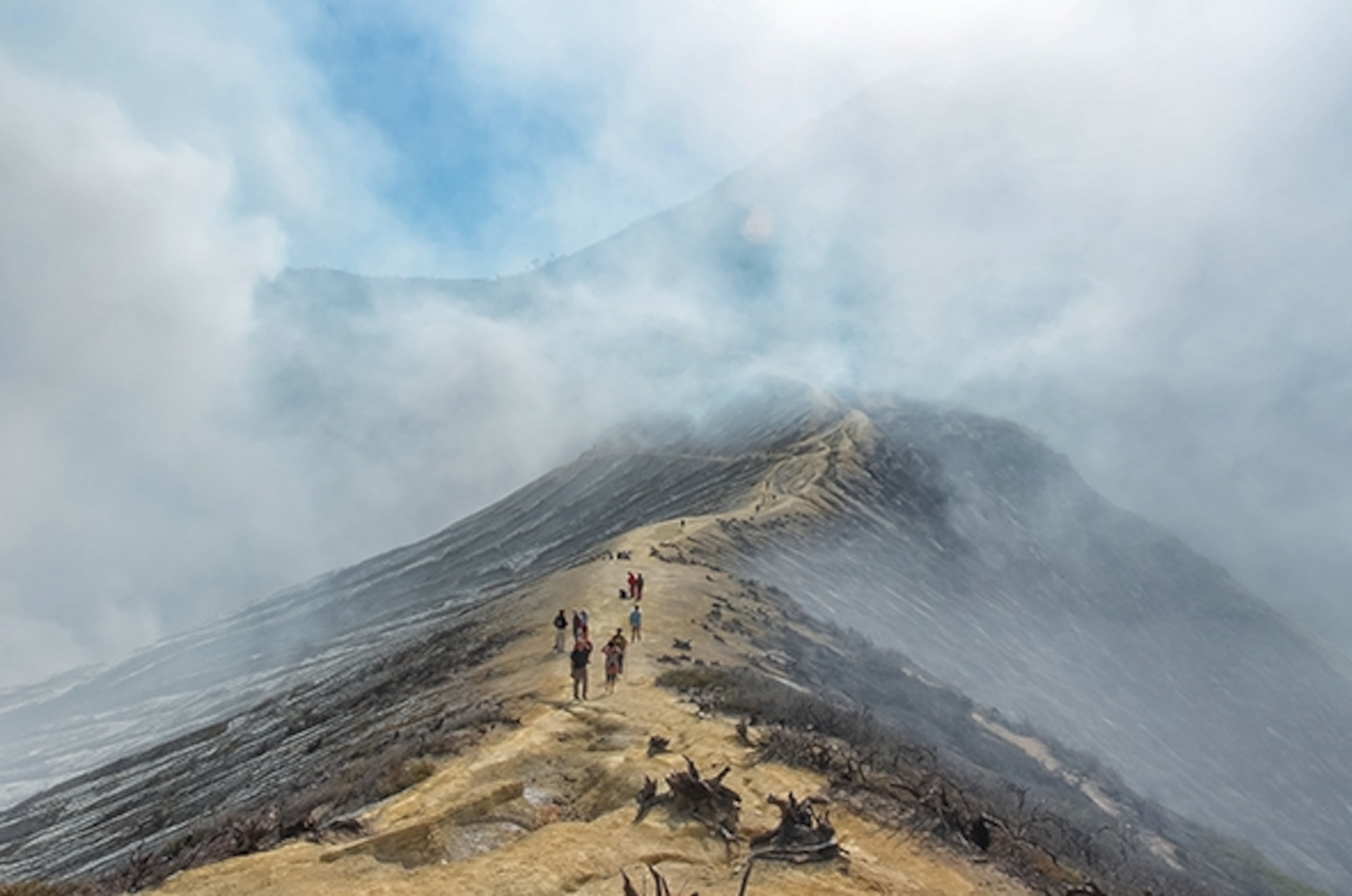 My friends and I were at the tail-end of a three-hour trek to get to the rim and had been very focused on the path ahead when, all of the sudden, the powerful smell of sulfur made the air difficult to breathe. This prompted me to stop walking and look at what was happening around me.