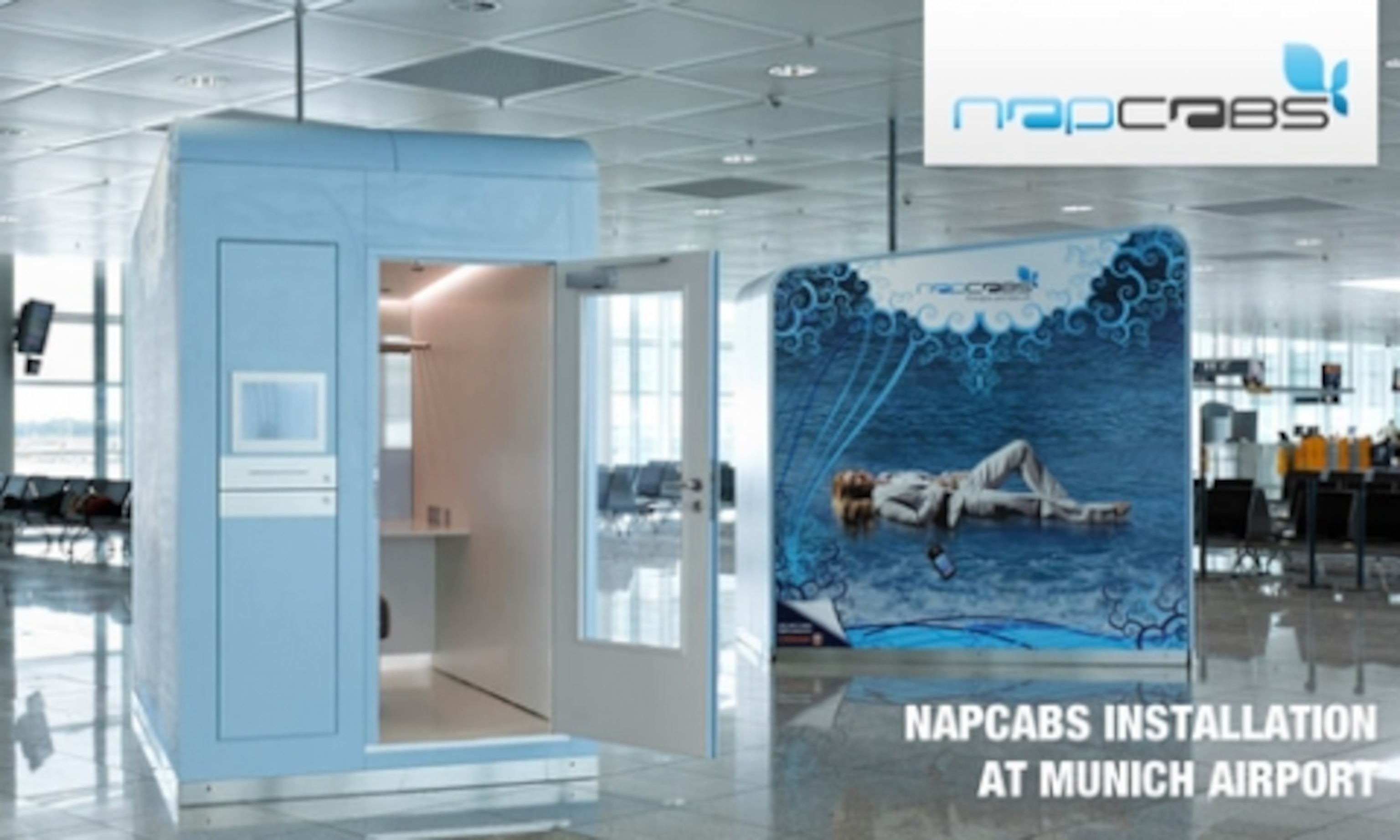 Our colleague Lynn Ackerson recently flew through the Munich airport, where she encountered two odd, futuristic-looking cubes in Terminal 2. Intrigued but exhausted, she curled up across a few chairs in the waiting area during her layover and said she’d investigate after her nap. Too bad she didn’t look first.