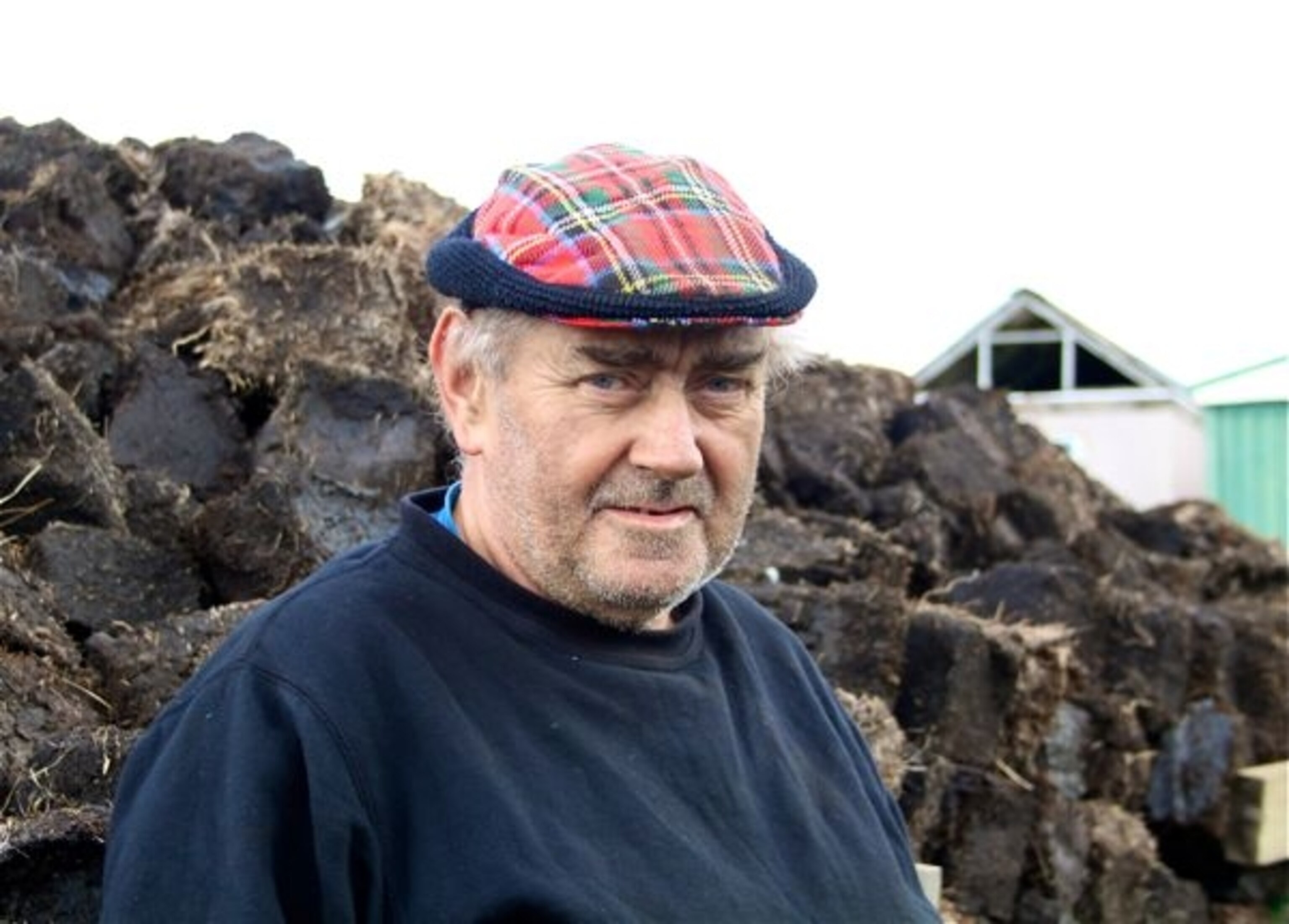 Richard shows me how he cuts the peat with a straight spade—he’s cut 100 cubic yards to get him through the upcoming winter. The black bricks of earth are heavy and smell like damp charcoal, but with bits of dried roots and twigs stuck inside. In Stanley, less than 20 homes still burn peat for energy—the rest of the town is on the grid—but for Richard, the peat is free. It’s an arduous job cutting it himself that took him most of the summer to complete.