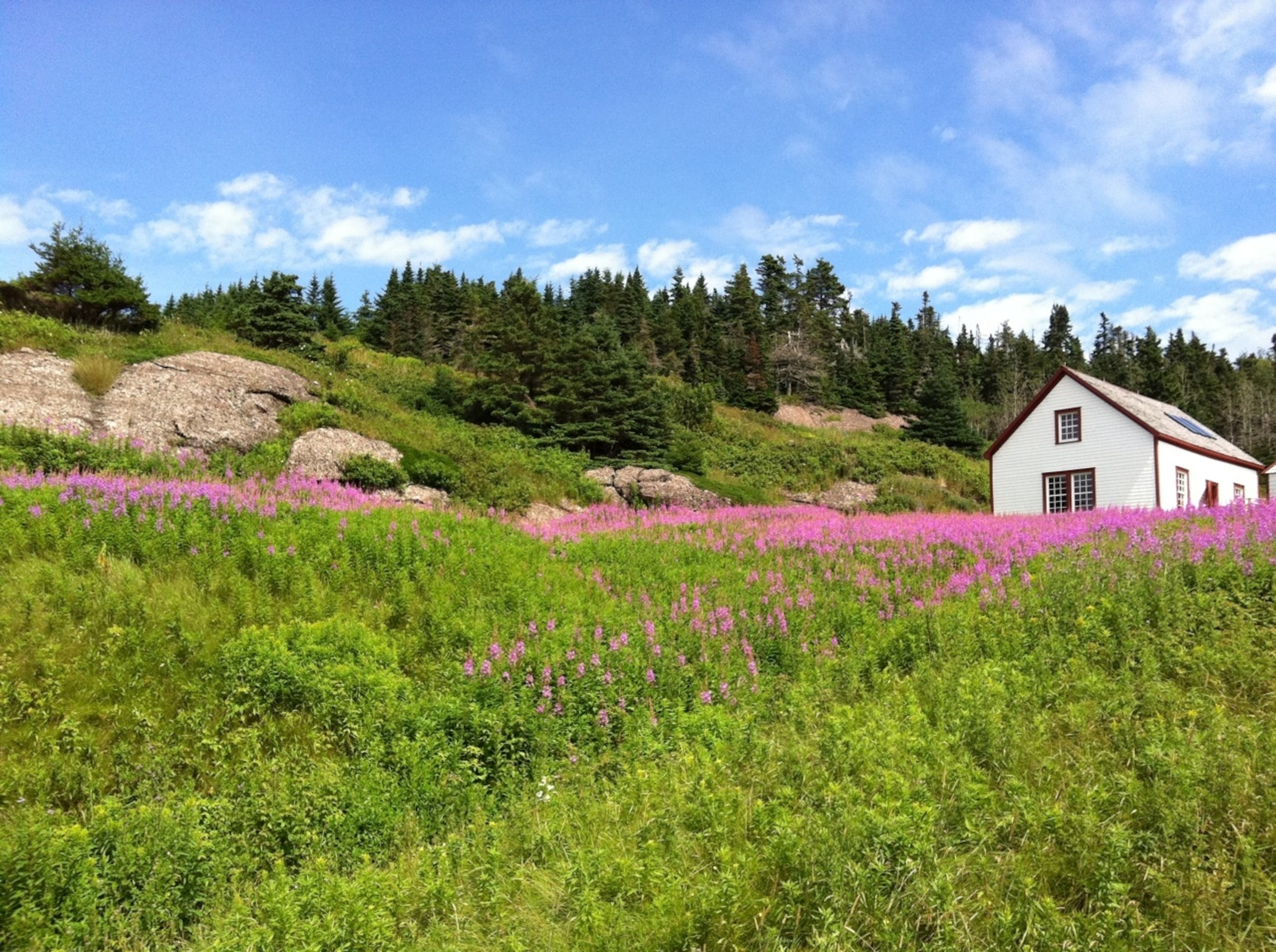 Gaspé is also a land of lighthouses. As I travel around this most scenic peninsula, each new town offers their own historic lighthouse, like a colored birthday candle placed at the end of each rocky point. The landscape is so magnificent and so gigantic that every manmade thing seems miniature and fitting, like someone painted in the minutest detail for each new valley. Covered bridges cross streams, sleek white windmills turn with the ever-present wind, brilliant barns stand out against the miles of unplanted fields and bright purple fireweed.