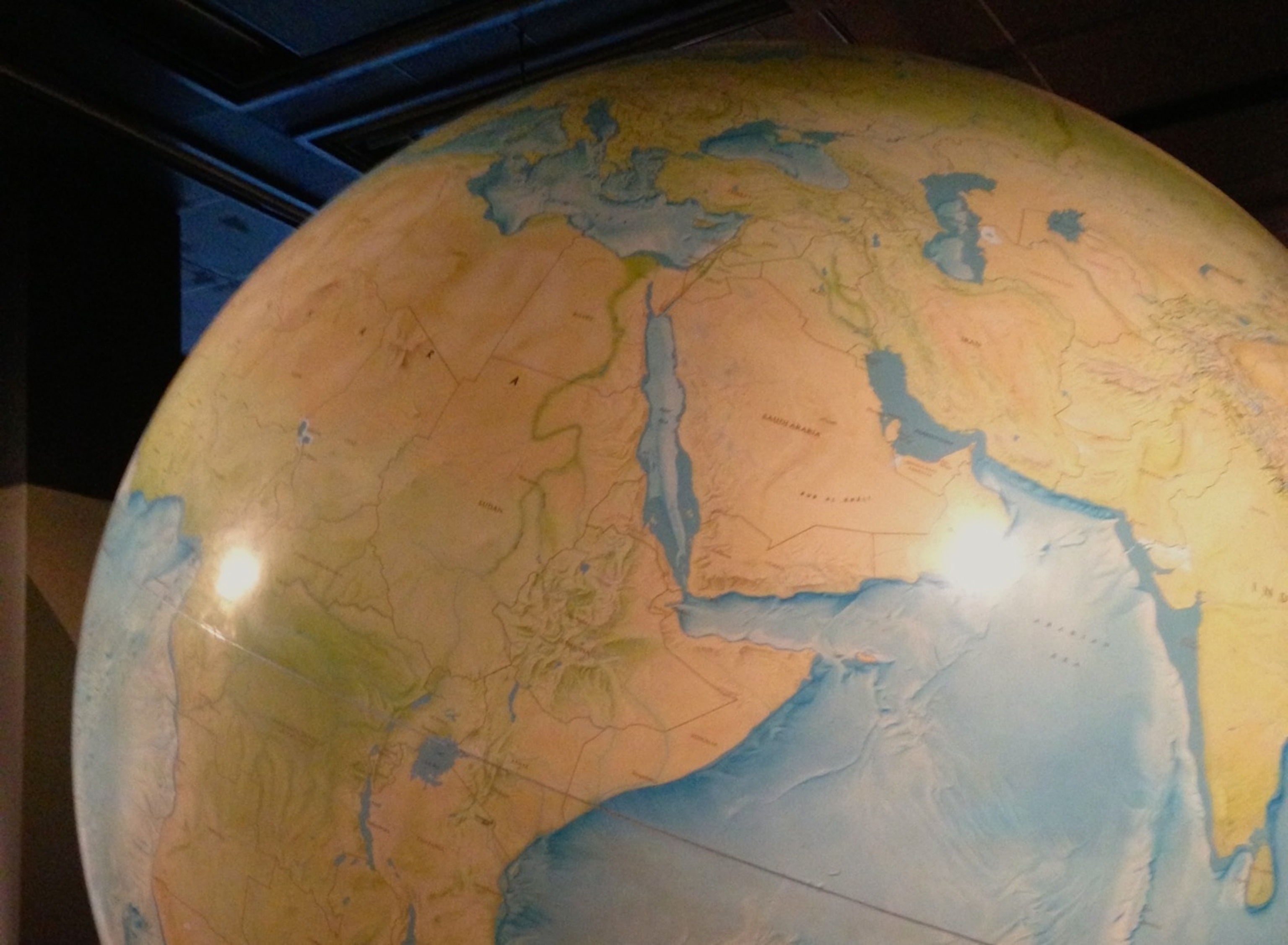 It’s called The Great Circle Route—the quickest way between two points on the globe is not directly horizontal. Over a curved surface, the shortest distance may curve up and over, or down and around. This is why my journey to Africa takes me above Belgium and Austria.