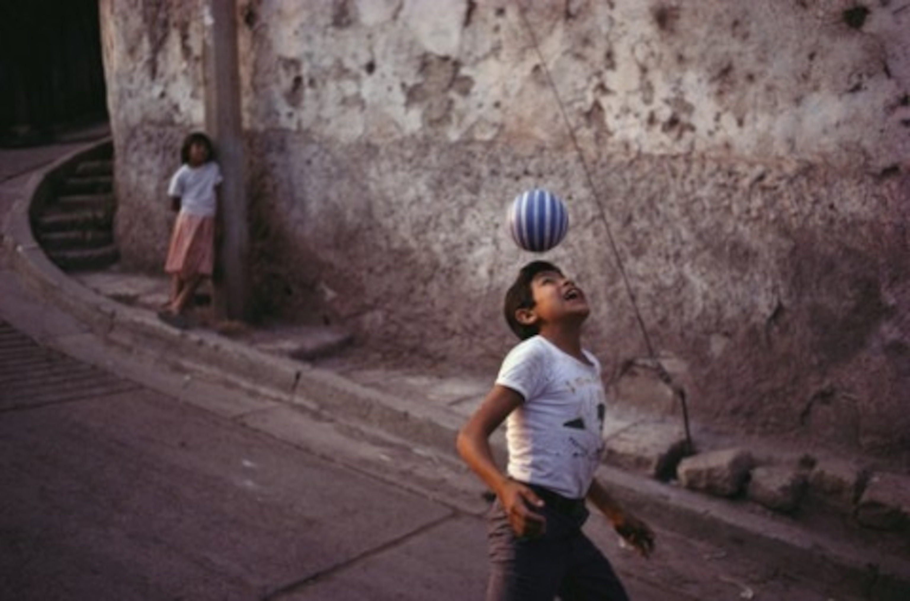 A young girl watches a boy demonstrate his soccer skills in Tegucigalpa, Honduras. By David Allen Harvey, National Geographic, 2007.