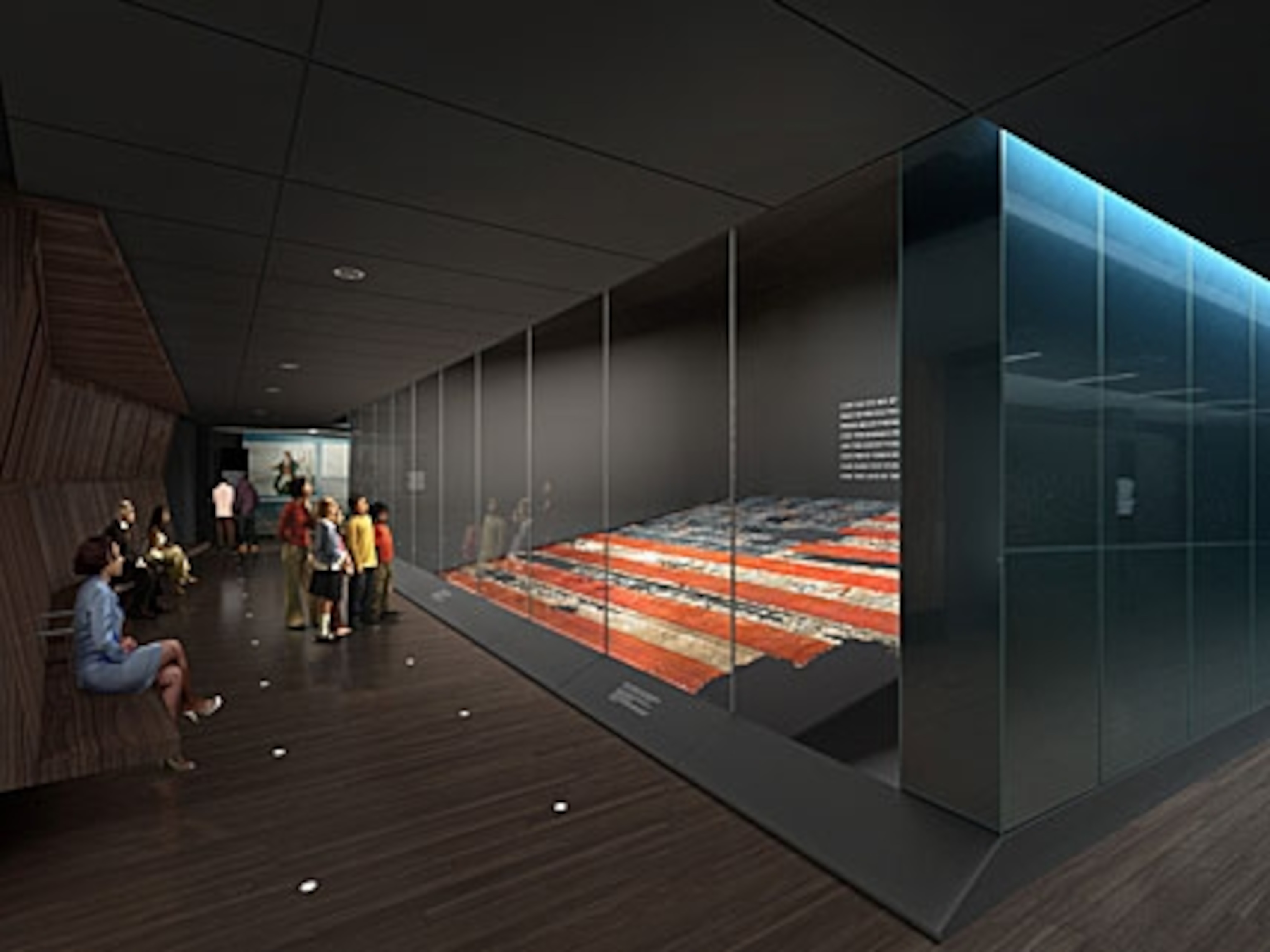 The Star-Spangled Banner itself is encased in a room surrounded by a 35-foot floor-to-ceiling glass wall. The room has a separate environmental system (from the temperature of the room, to a fire prevention system, to the table it lays on at a 10 degree angle) which is designed to protect the almost 200-year-old flag. Don’t miss the interactive projection of the flag (pictured in video), which details specific aspects of the flag’s history.