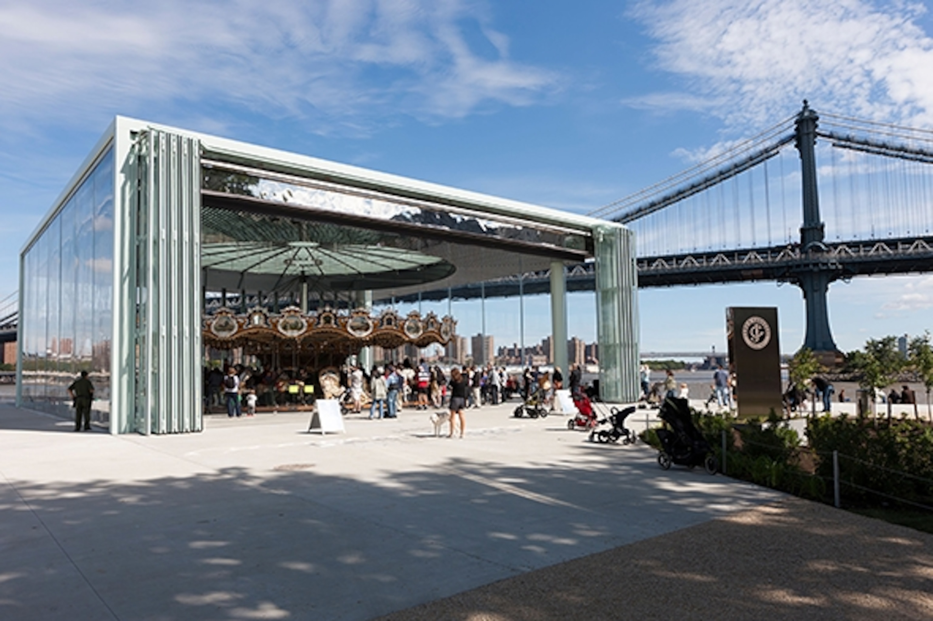 Prospect Park’s historic carousel closes in the rain, but that’s arguably the best time to visit Jane’s Carousel on the waterfront in DUMBO (Down Under the Manhattan Bridge Overpass), which becomes a kind of submarine, with water streaming down Jean Nouvel’s gorgeous glass box housing, blurring the barges gliding by on the East River.