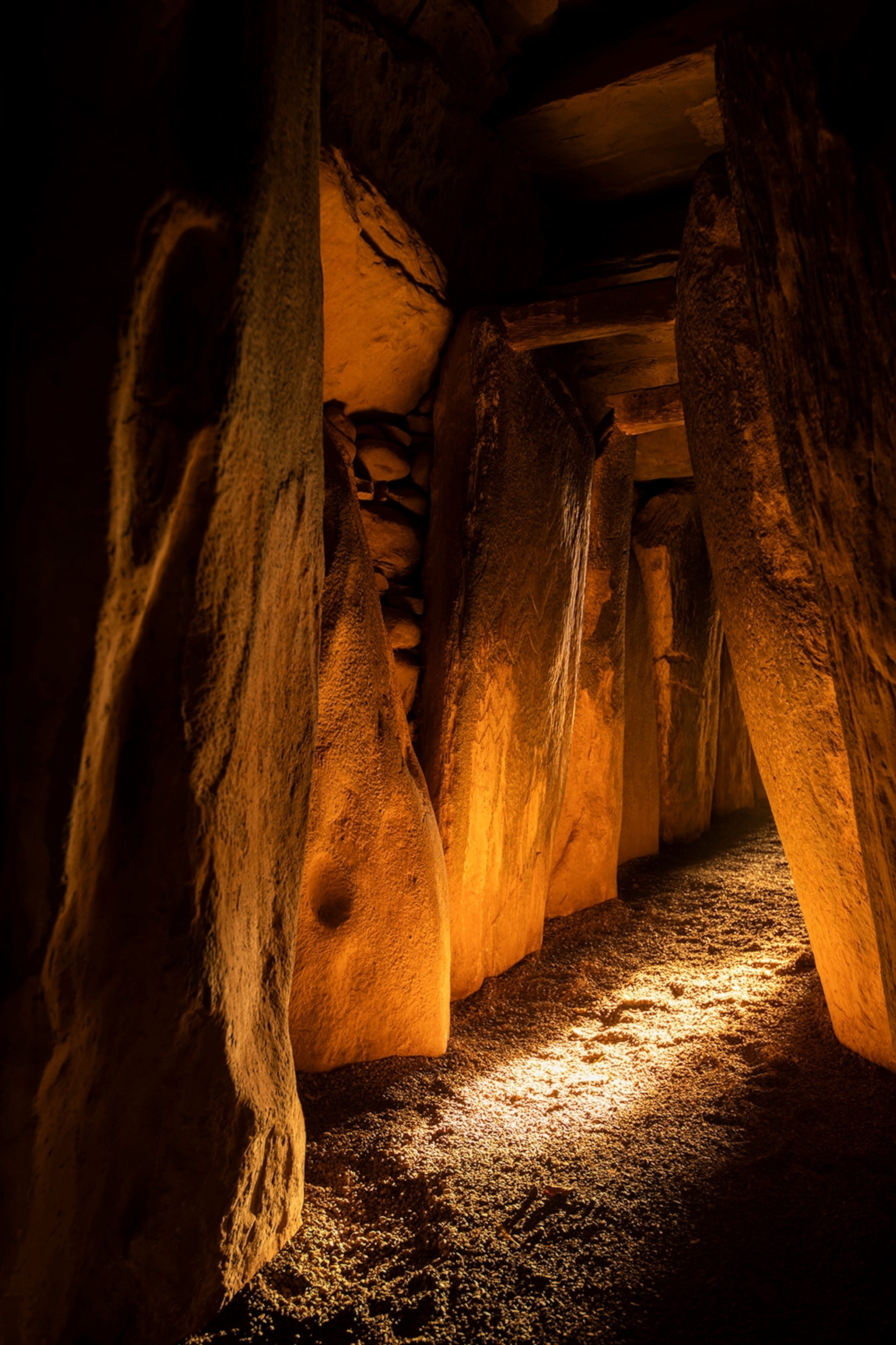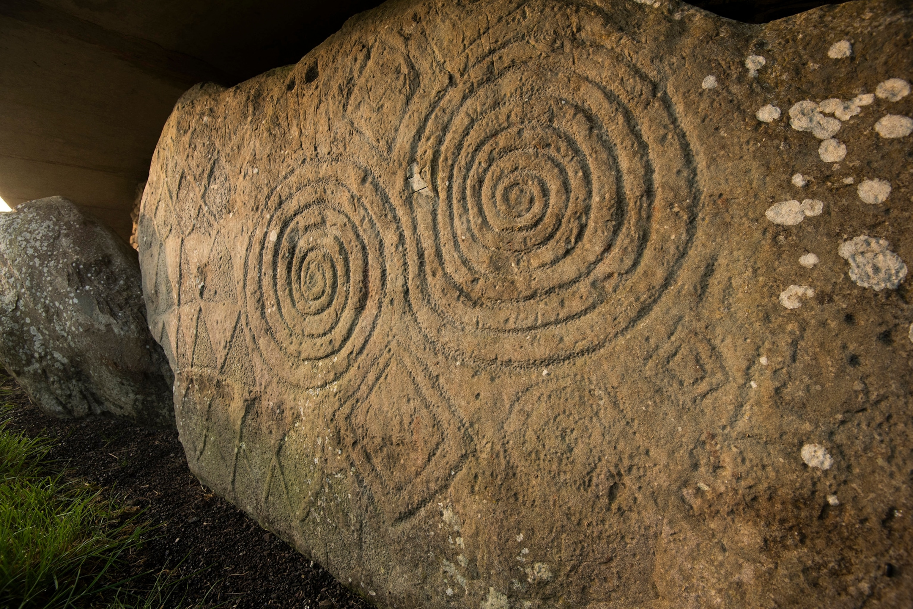 Each year, as the solstice sun rises over County Meath, a narrow beam of light pierces through a small stone opening above the tomb’s entrance — a ‘roof-box’ designed to capture the first rays of the midwinter sun — and travels 19 metres along the passage, illuminating the chamber’s intricate megalithic art and flooding the space with gold before fading as the sun climbs. This extraordinary calibration was engineered more than 5,000 years ago and is one of the world’s most remarkable examples of prehistoric astronomy.
