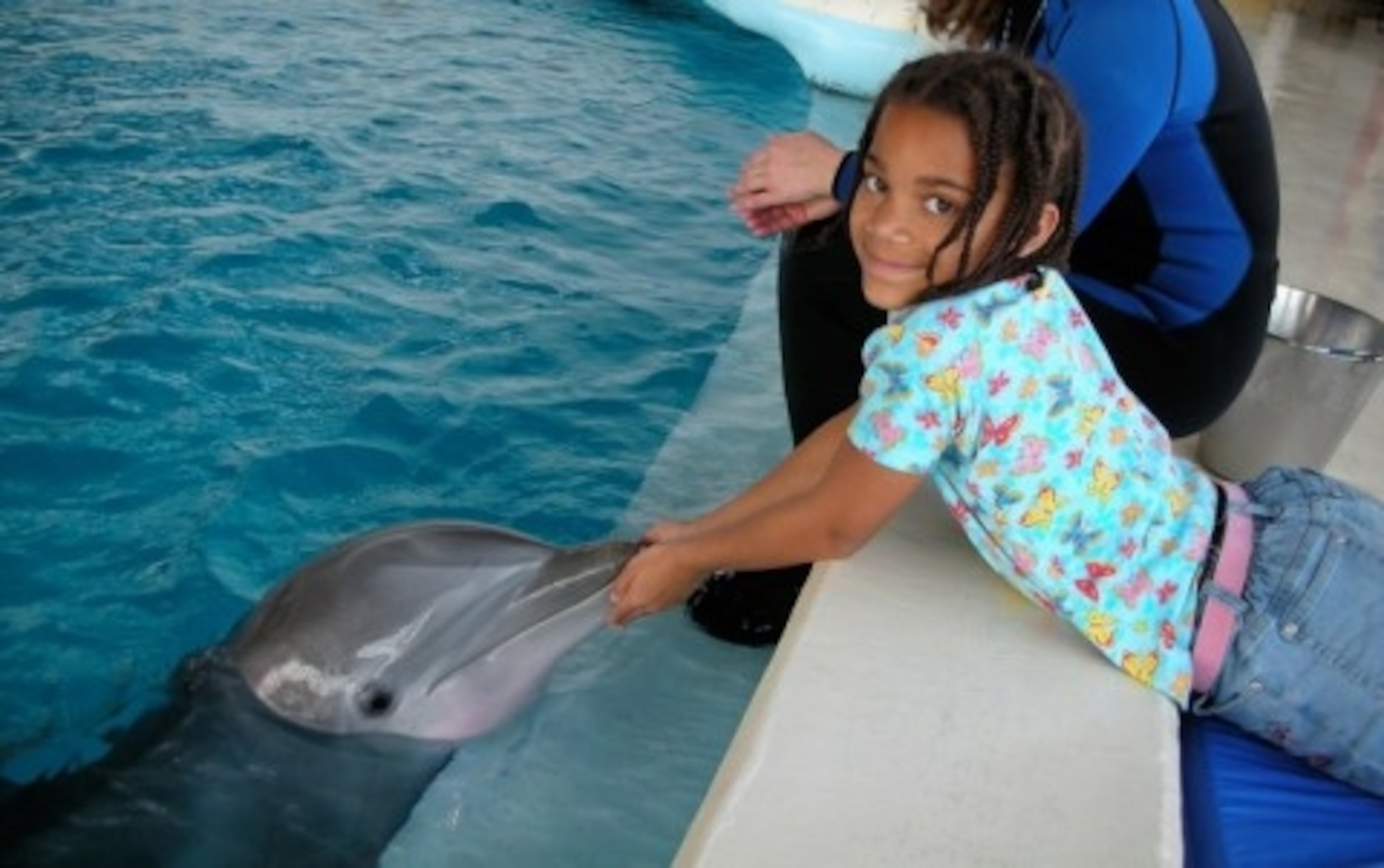 The Baltimore aquarium’s new Dolphin Encounter program, which takes you backstage with the trainer and the marine mammals, is a close encounter of the interspecies kind. The 2 1/2 hour program includes reserved seating at the dolphin show and a short educational seminar. But the highlight is a play session at the edge of the pool with the high-diving creatures. It’s hard not to anthropomorphize these clearly intelligent beings (They like playing catch! They’re so happy!). I grew up watching Flipper reruns, see, and entertained dreams about become a marine biologist. But fulfilling one’s fantasy doesn’t come cheap. The program costs $195 and reservations are required. I’m not going to enter into a debate on the ethics surrounding the use of captive animals; suffice it to say that the aquarium follows best practices in the care and keeping of its charges, and focuses on education.