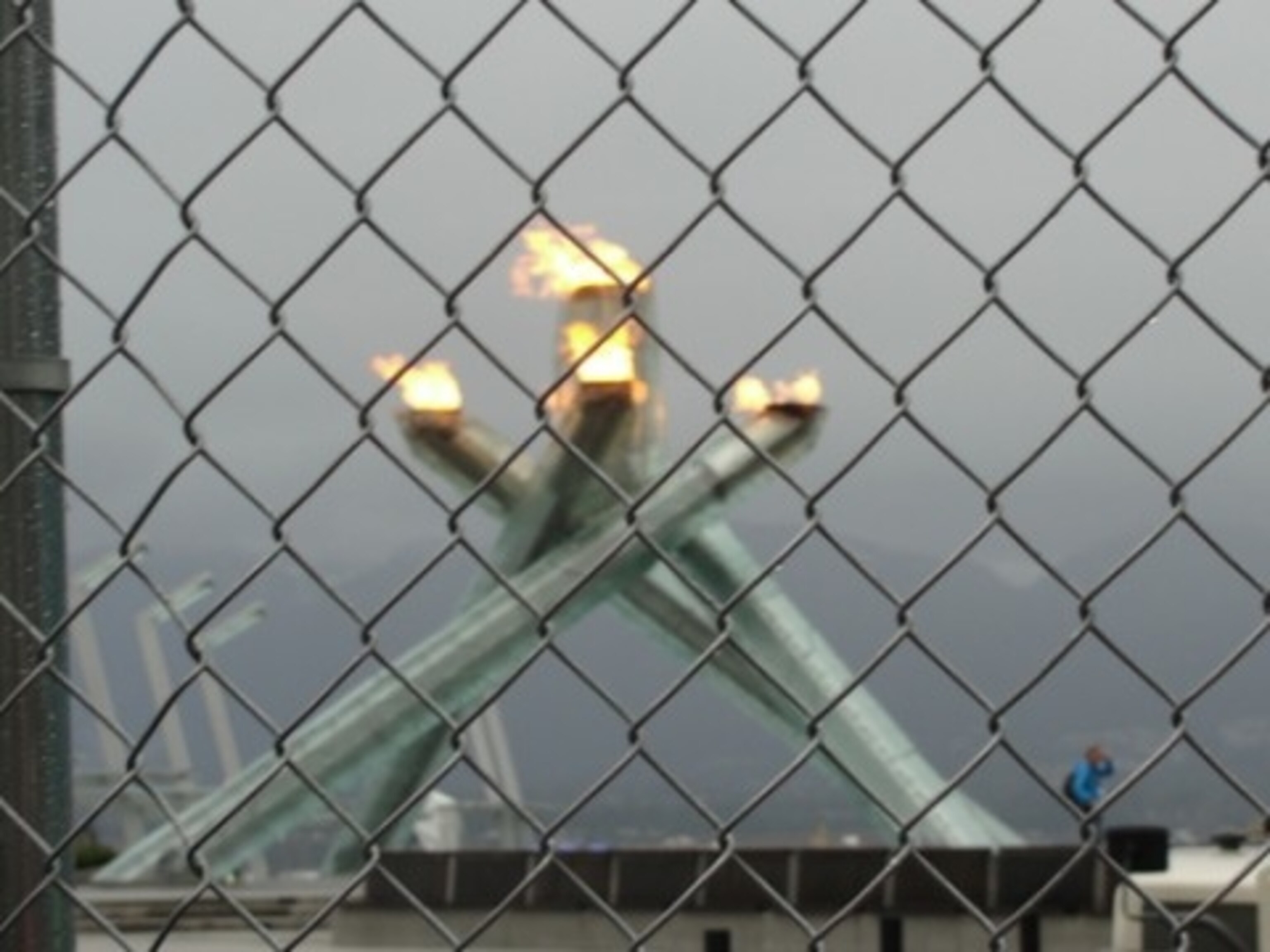 How can something be so very impressive but also so disappointing? The Vancouver Olympic Cauldron falls in that unlikely category. My family and thousands of others lined up outside Canada Place on Vancouver’s waterfront in the pouring rain for a glimpse of the famous flame, only to find it unceremoniously locked behind a chain link fence–there was no way to get a clear view with your camera without pushing the lens through a gap in the links.