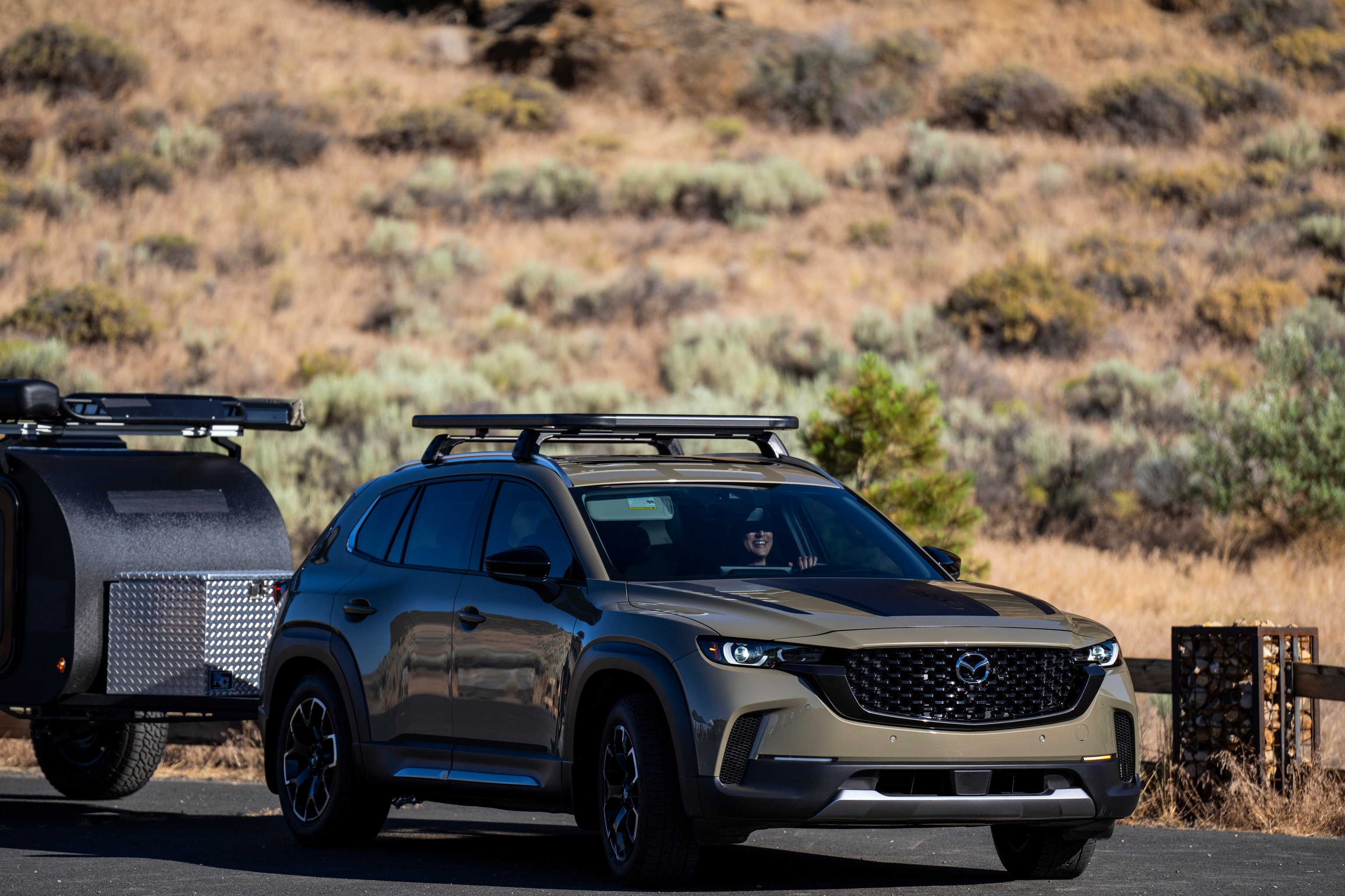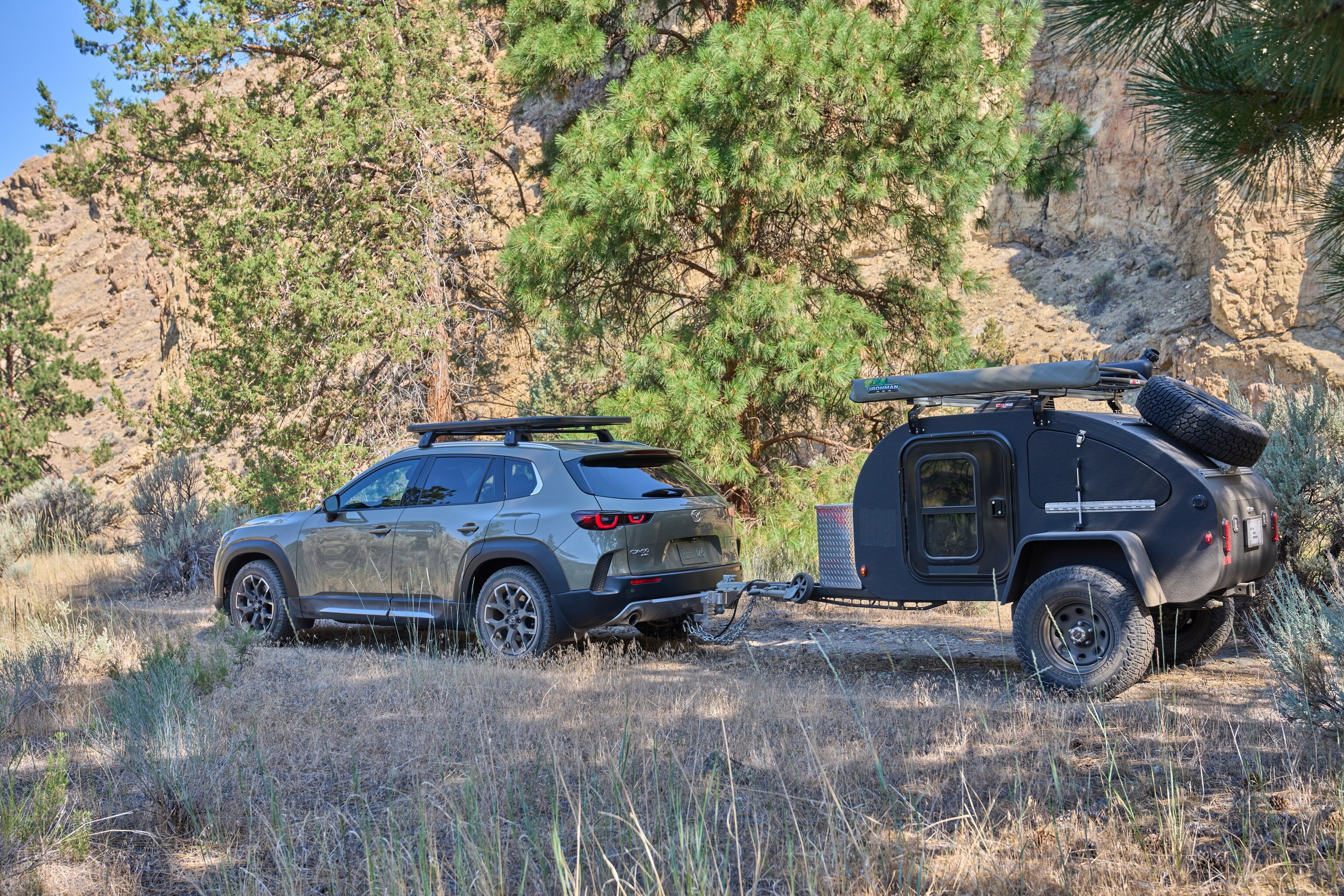 Back on the ground, they hike to the CX-50 and drive the dusty, dirt roads to the Whychus Canyon Preserve to learn more about Oregon’s high desert. Located northeast of Sisters, Oregon, the preserve is a 930-acre expanse of rimrock canyons and uplands along the Whychus Creek. It’s protected by the Deschutes Land Trust which conserves and cares for over 17,000 acres of land across central Oregon.