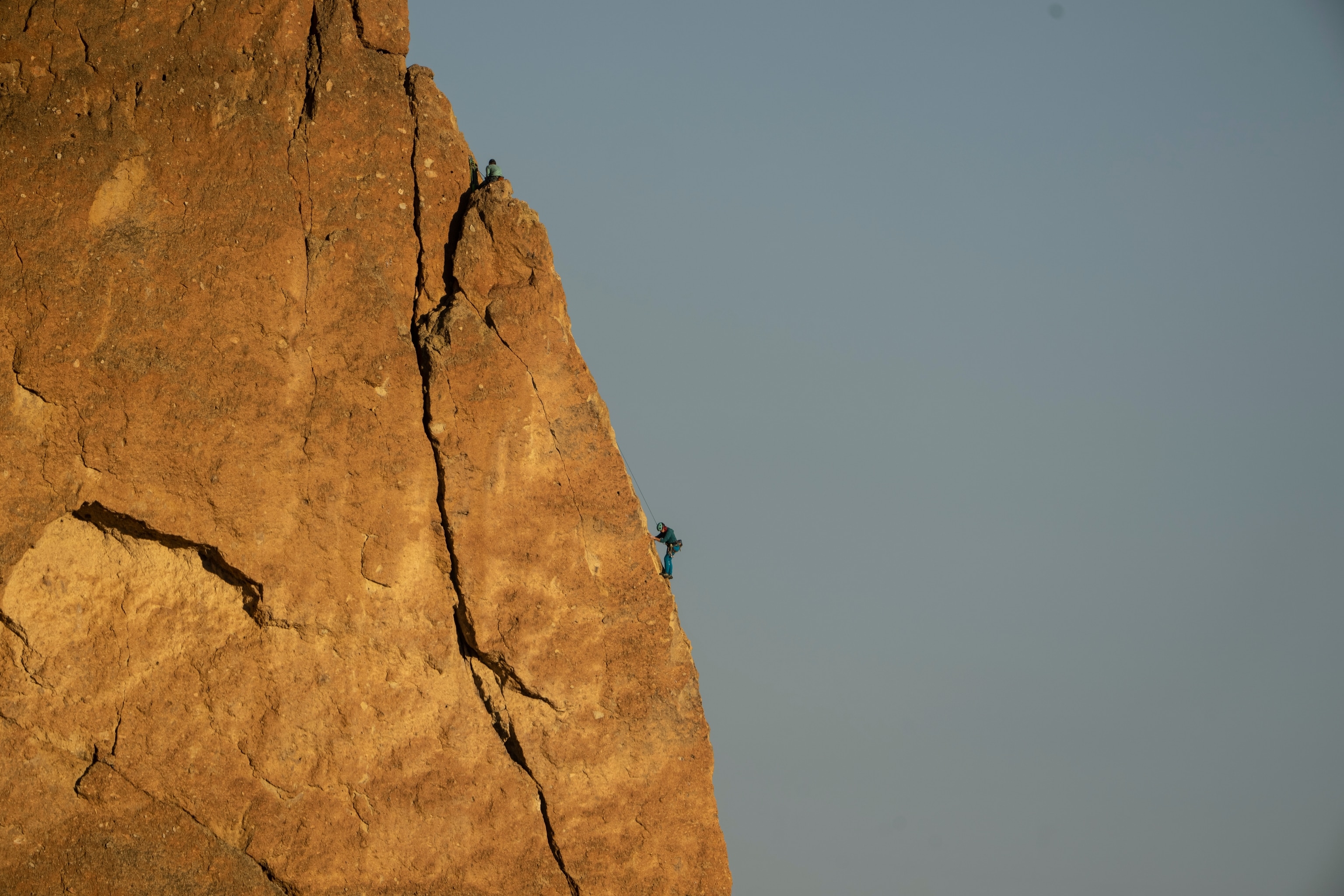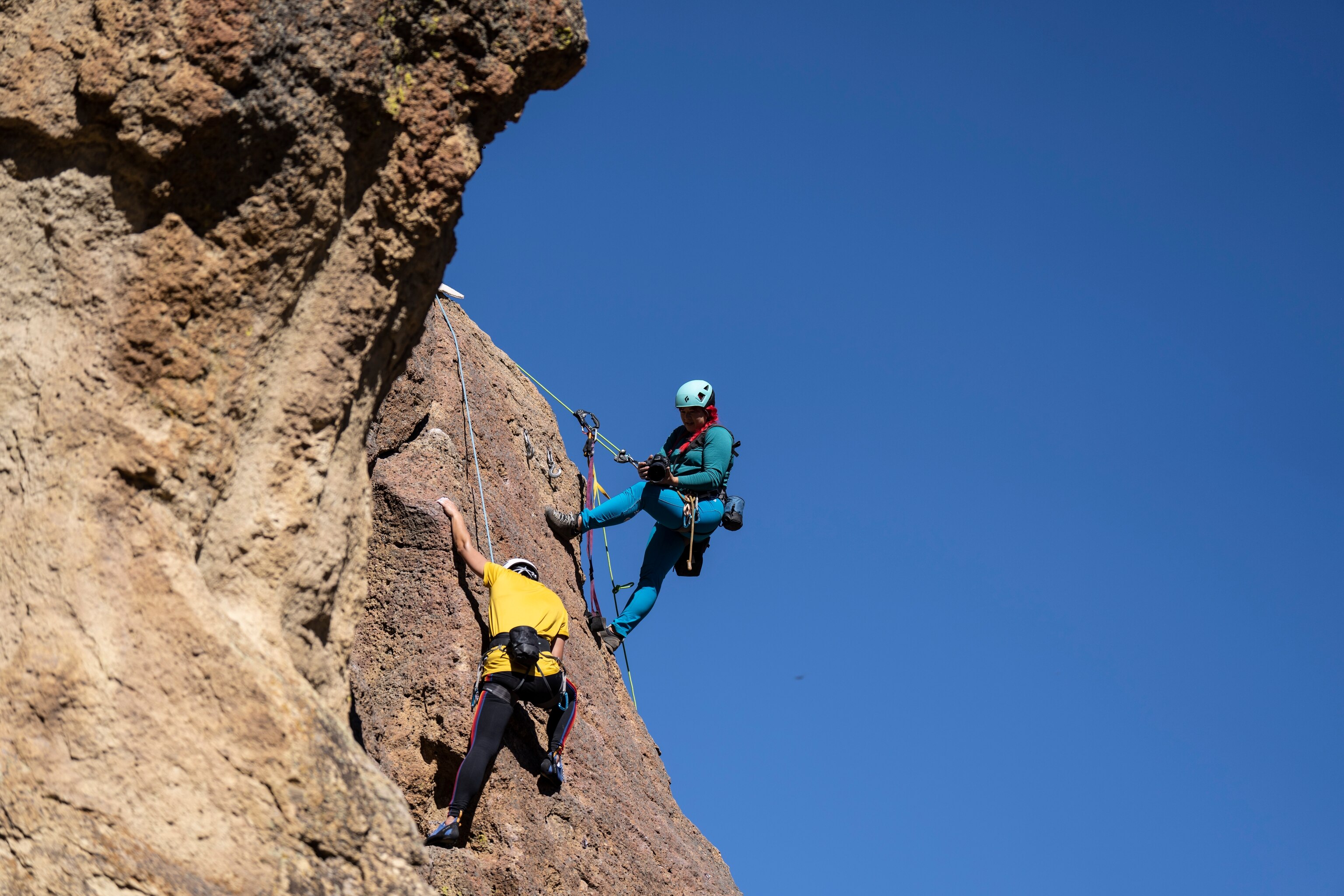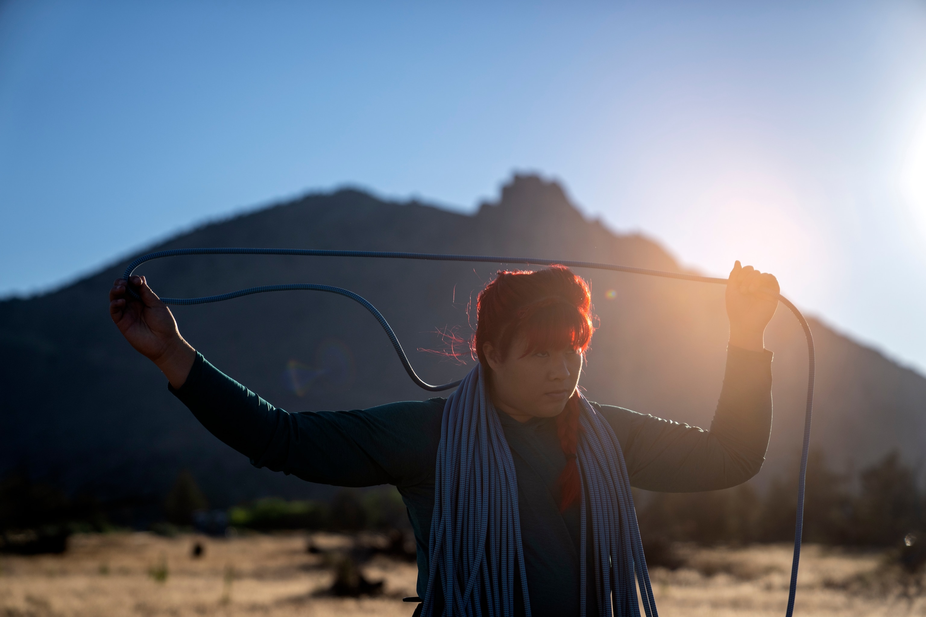 When King and Yee finish snacking, they reconfigure their ropes and rappel down the rock face. King descends confidently, with a new appreciation for her strength and this dry and rocky landscape.