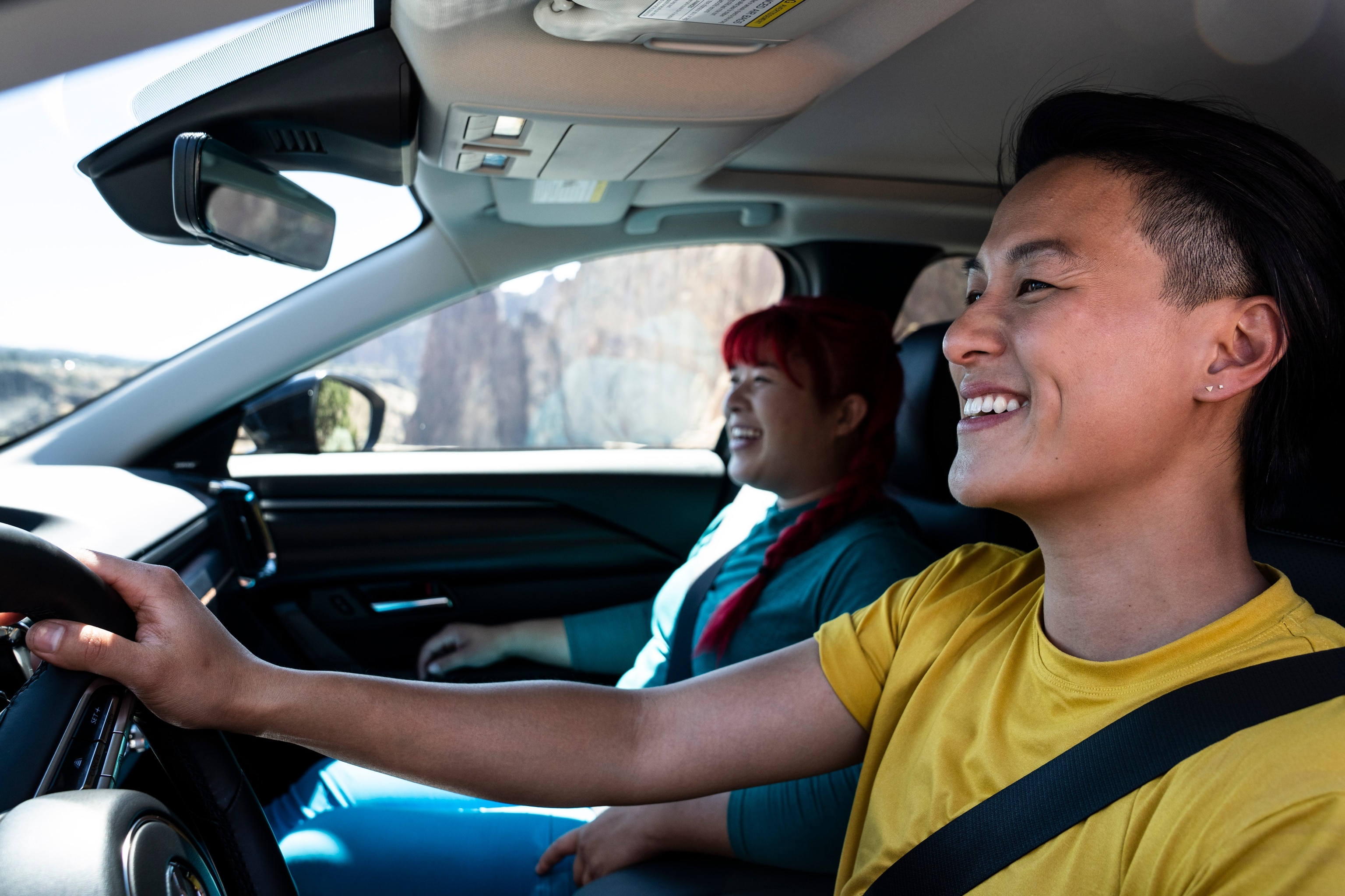 King and Yee stop at an observation point and gaze out toward the park’s towering rock cliffs. At first, King feels intimidated—she has never climbed before and has a fear of heights—but she reminds herself that she came here to try something new, and gain new inspiration from that experience. King grabs her pack and climbing gear from the cargo space of the CX-50 and heads out with Yee.