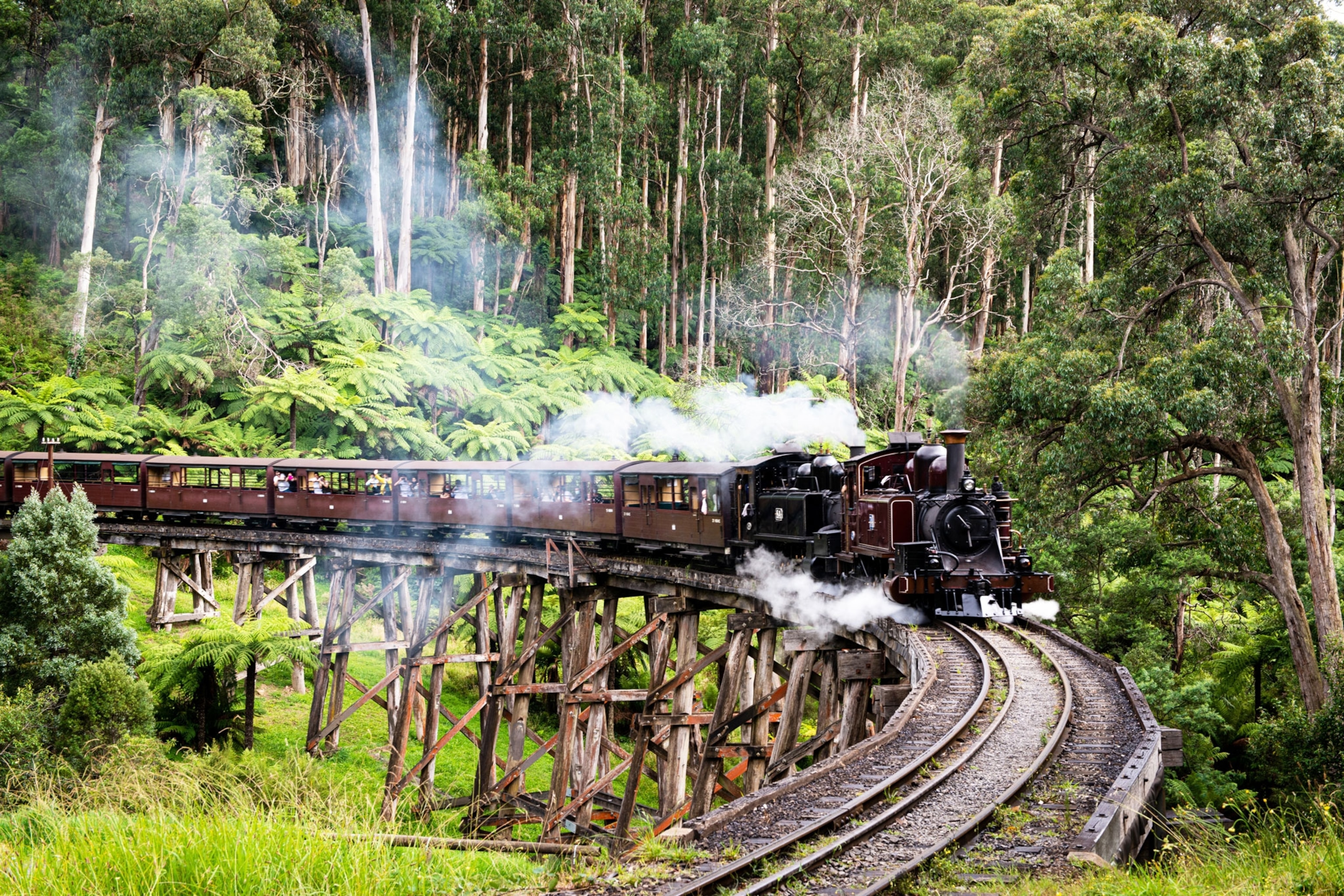 The pinnacle of Dandenong’s timewarp wholesomeness, however, is the Puffing Billy steam railway, which choo-choos for 16 miles over timber trestle bridges, down the valley and into the forest on the original mountain track between Belgrave and Gembrook.