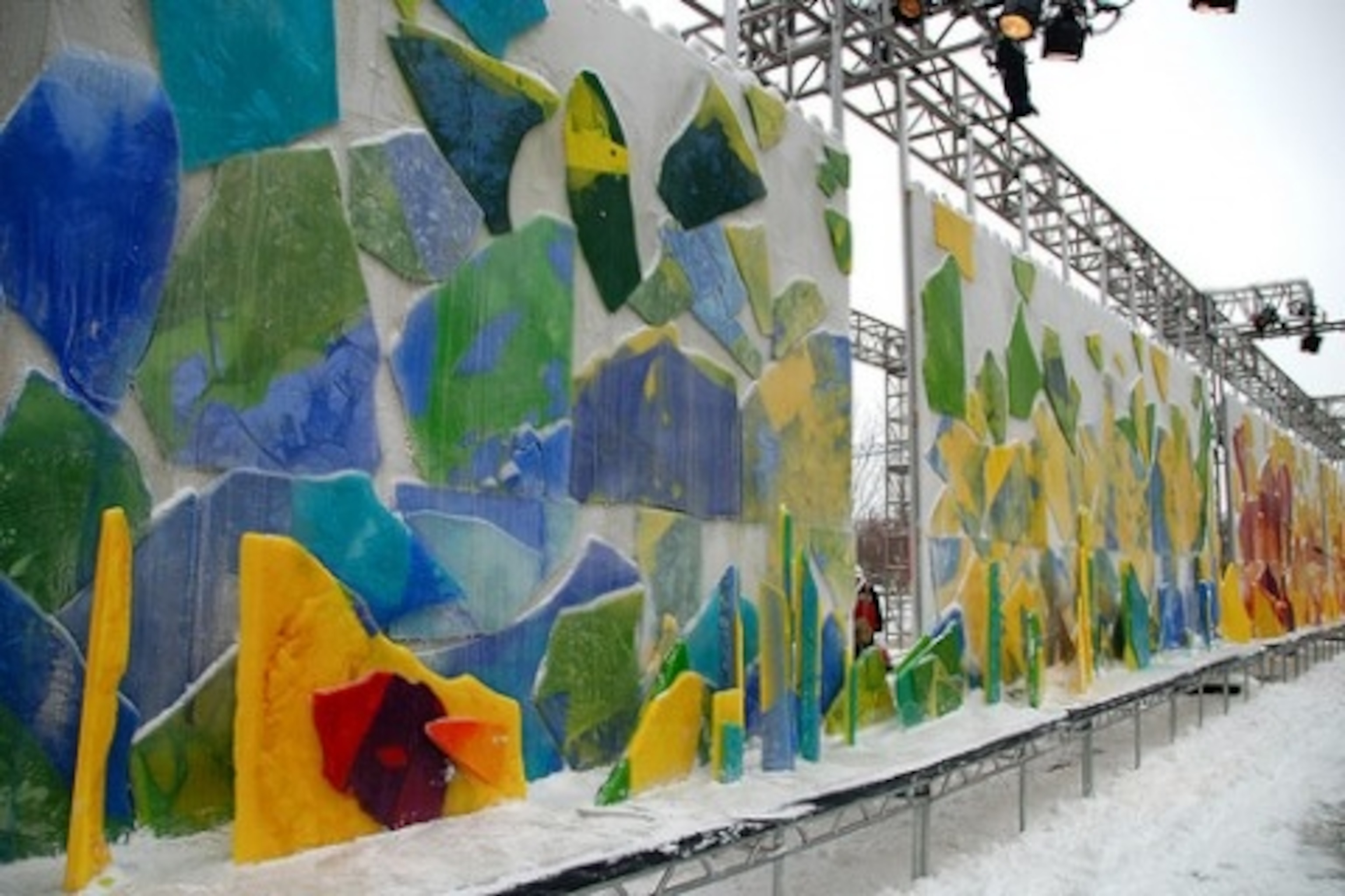 The work is an impressive, 95-foot long, 12-foot-high sheet of ice that constantly changes shape and texture as it melts and refreezes. Known locally as “The Popsicle,” Paintings Below Zero was quite a feat to create. The Chicago Tribune reports: