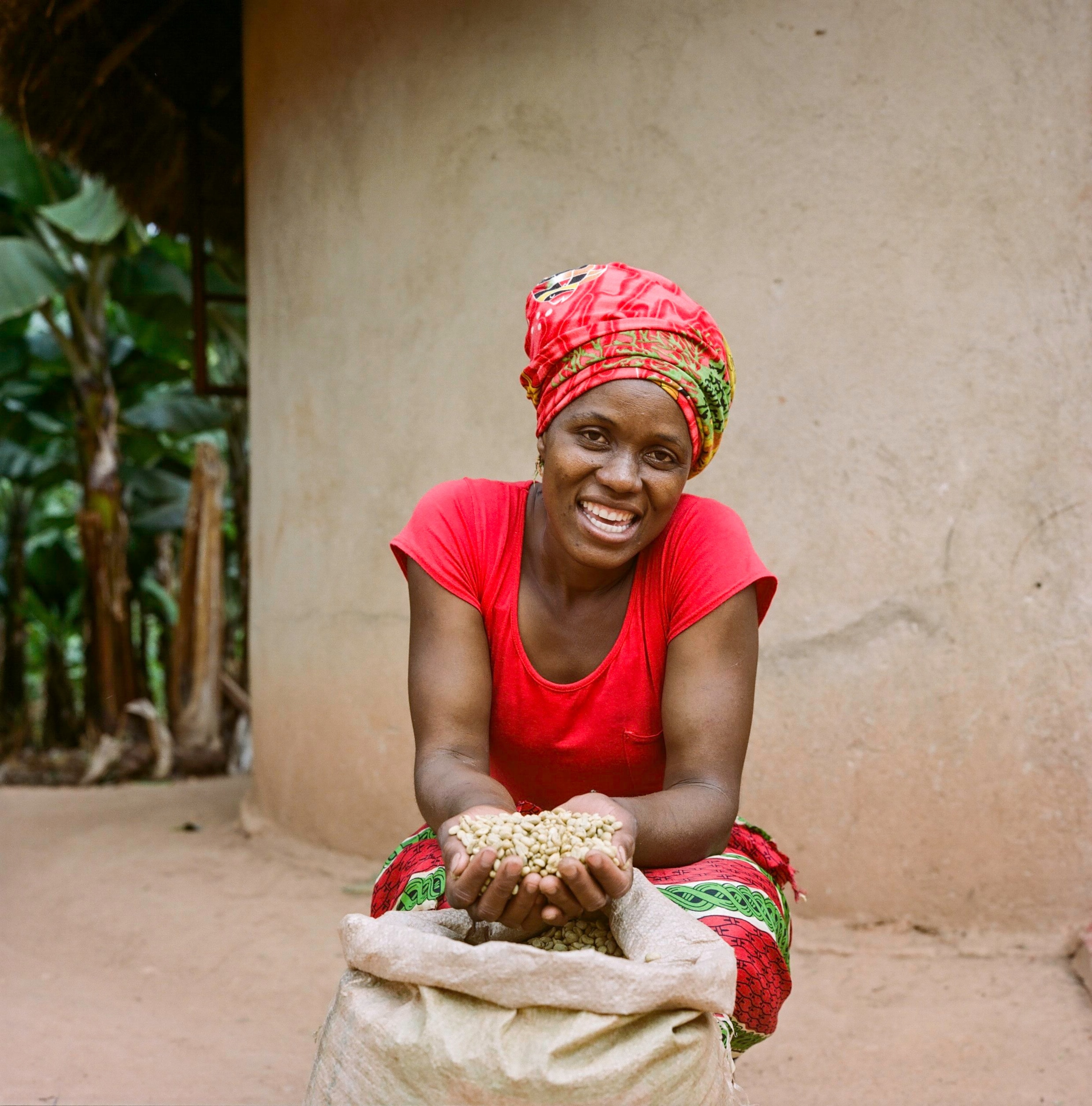 On her smallholder farm, Jesca carefully tends her plants, regularly watering, weeding, and applying fertilizer. She now mills the coffee at home—a vast improvement, as previously it was necessary to carry the heavy bags of beans to a distant mill.