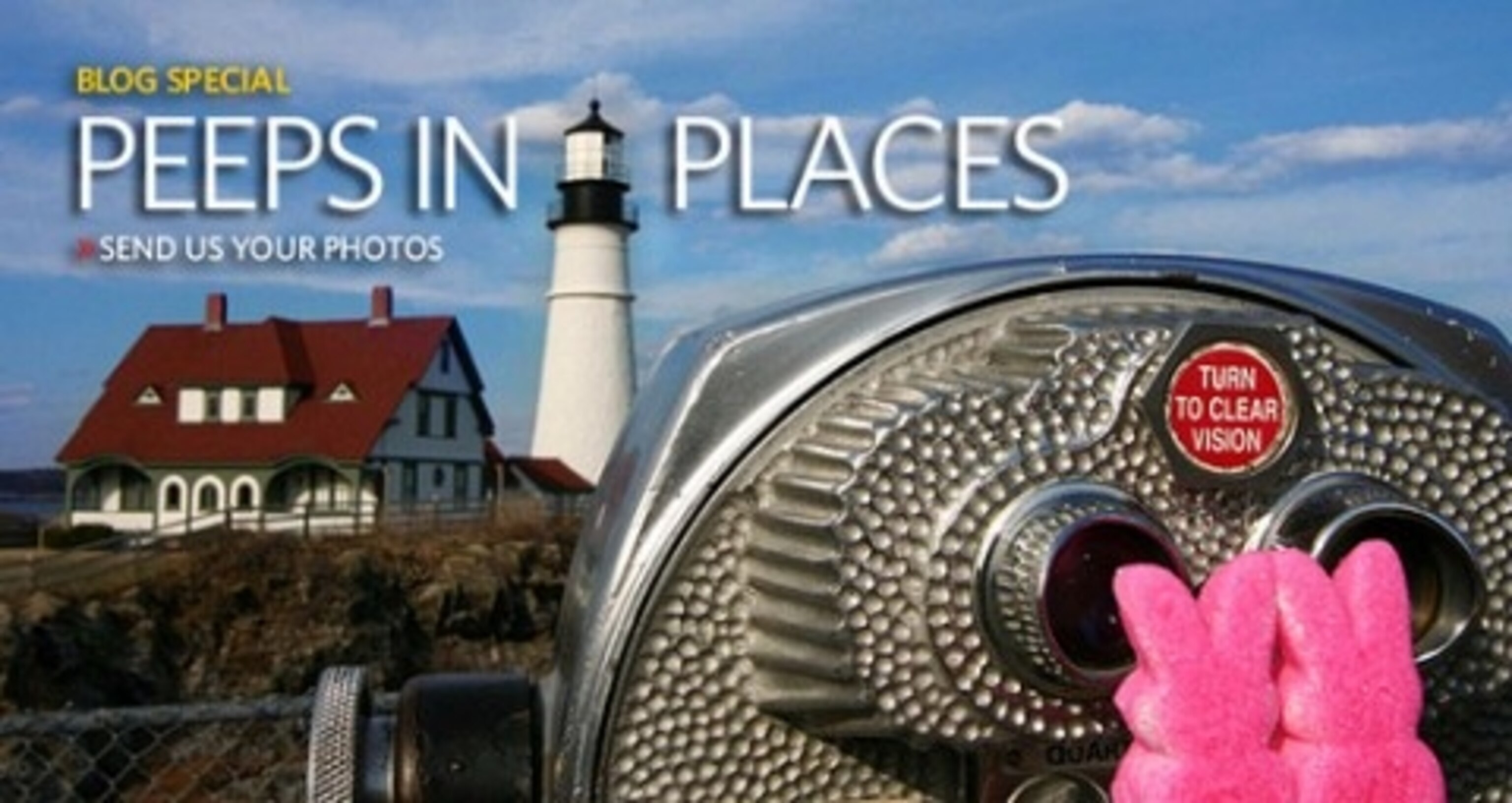 Photo: Peeps peer through the viewfinder at the Portland Head Light in Cape Elizabeth, Maine. By John Frazier, contributor to last year’s Peeps in Places favorites gallery.