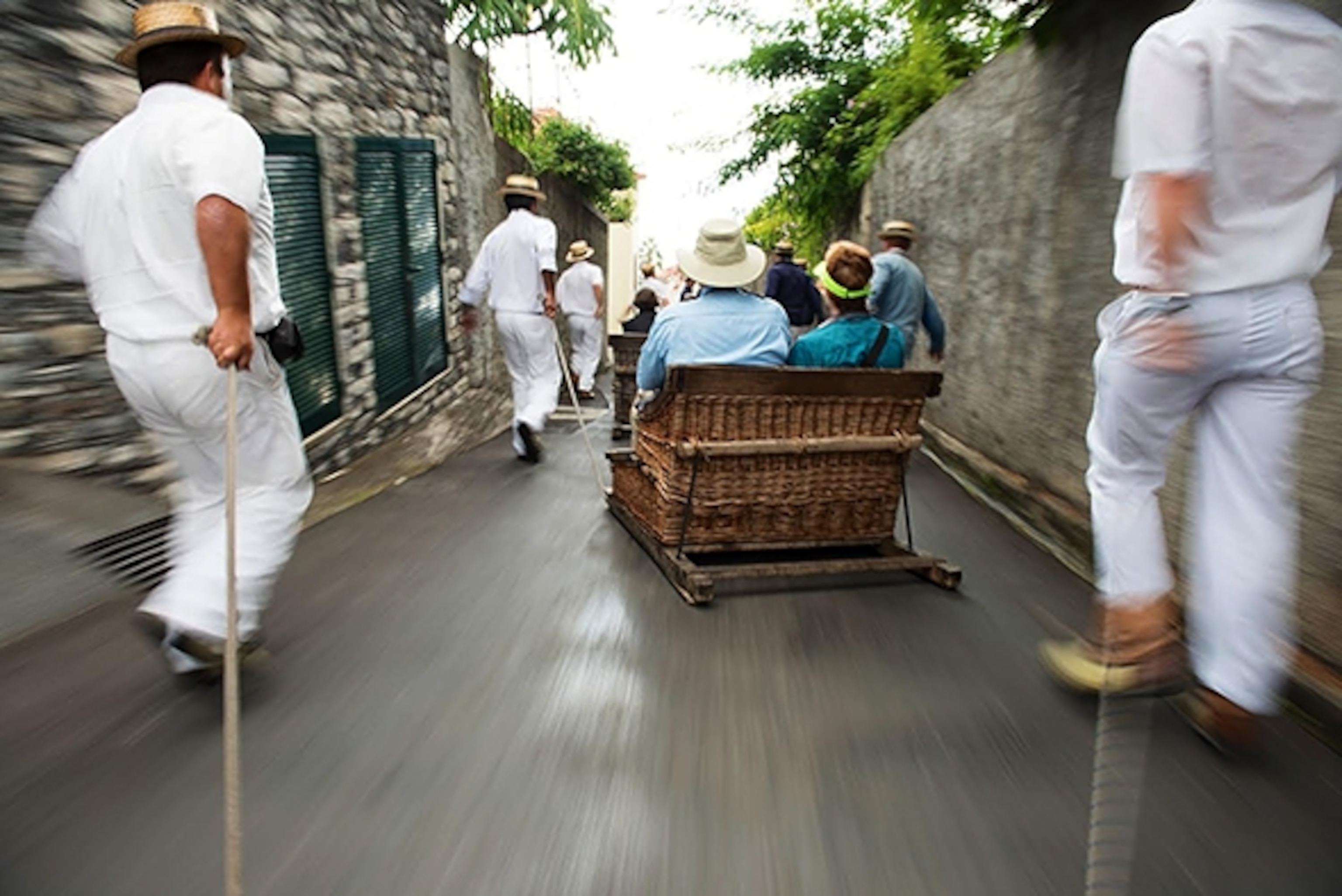 While in port at Funchal, we took the opportunity to try out the famous toboggan run that starts at the top of Monte, a 2,000-foot-tall mountain that presides over the city. You get there by taking a ride up to the peak with a cable car that provides eye-catching views over the city. The run, which starts just behind the Nossa Senhora do Monte Church, gives visitors a chance to whiz down winding, narrow streets in giant wicker baskets, steered by two white-suited guides, or carreiros.