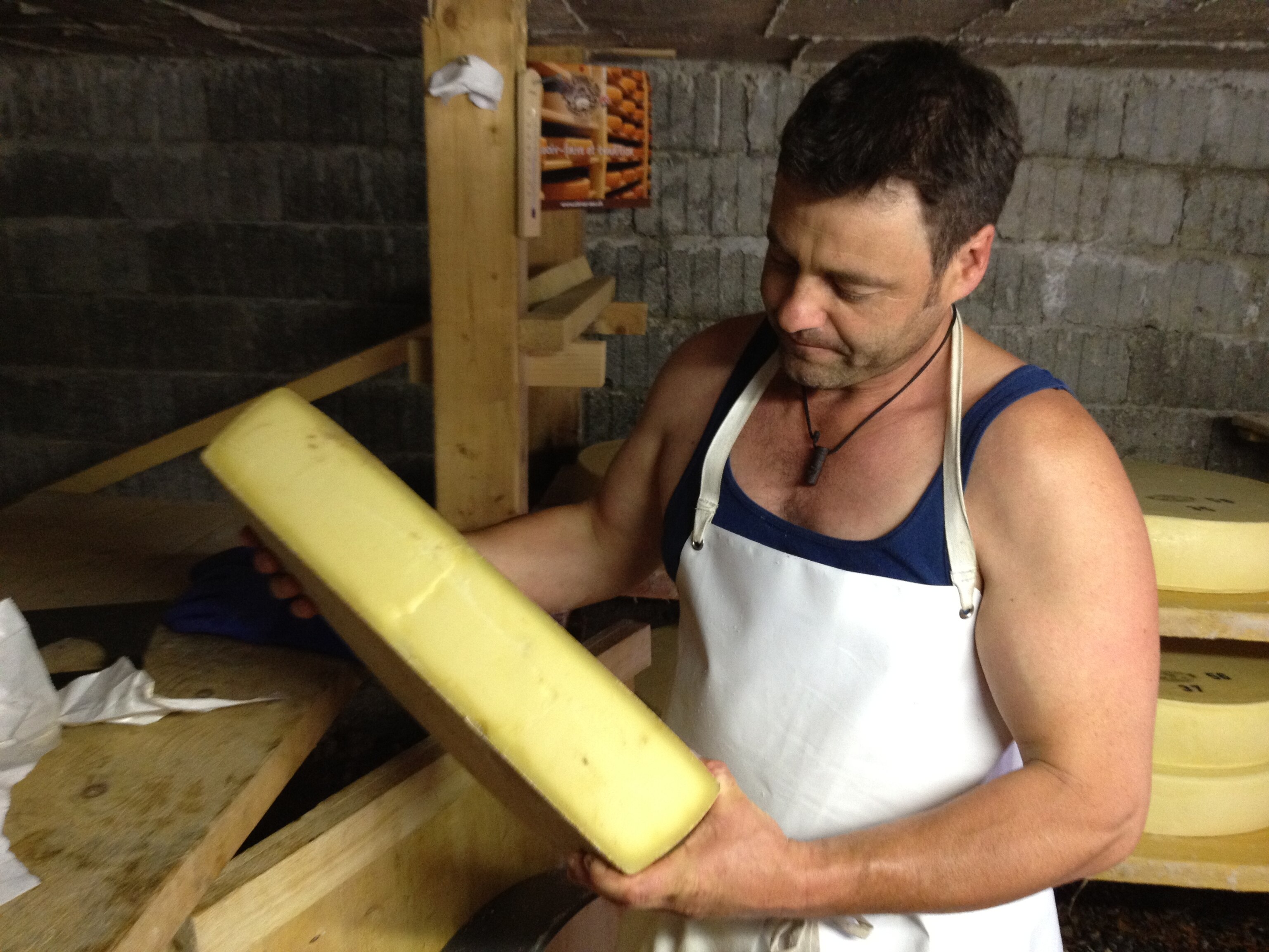 “If there are holes, that means there is water—or whey—inside the cheese, which means it won’t last as long,” Dominique explains, referring to the cheese he makes: L’Etivaz.