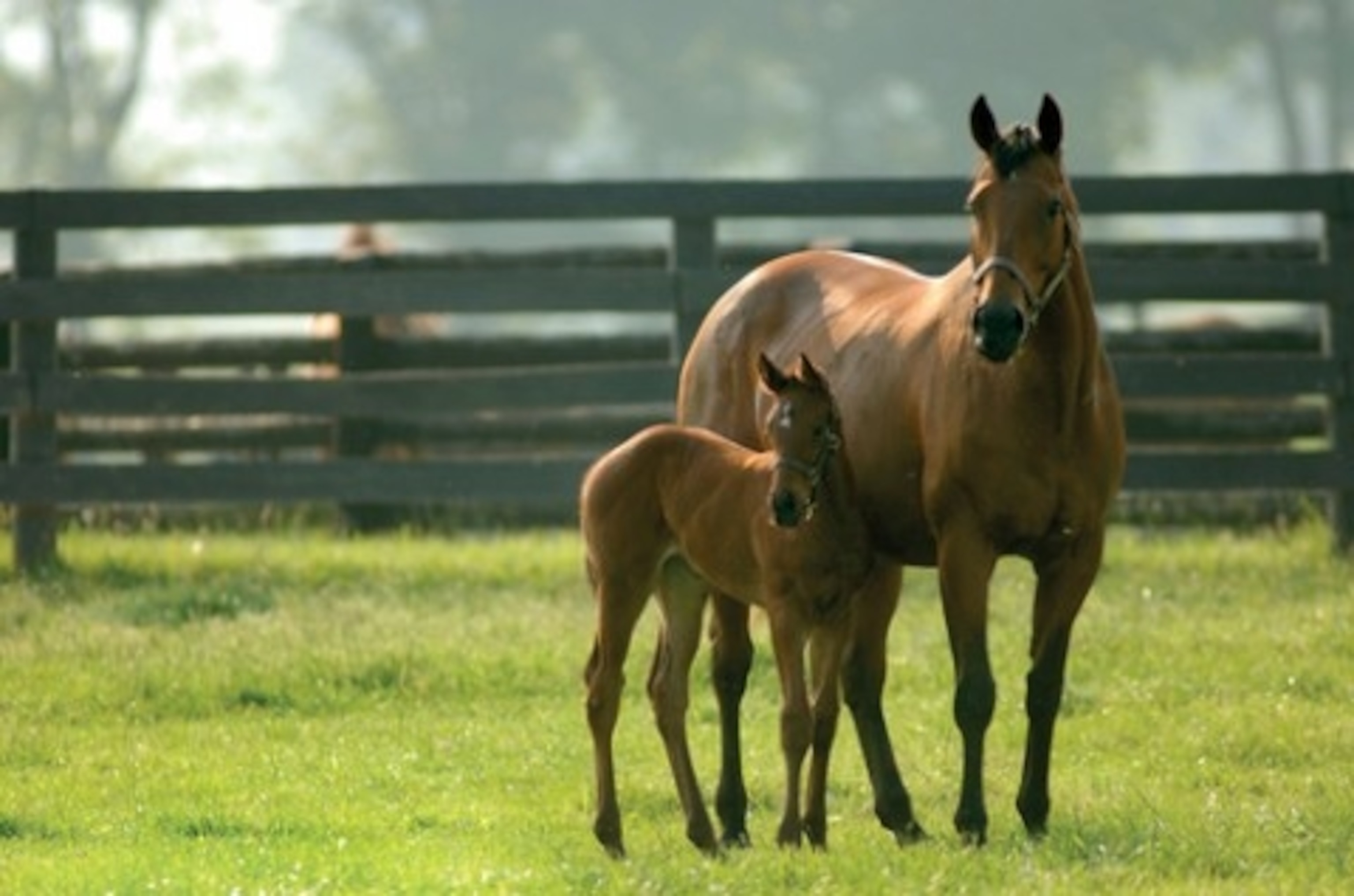 Photo: A mare and her foal in the spring at Three Chimneys Farm, by Lee Thomas
