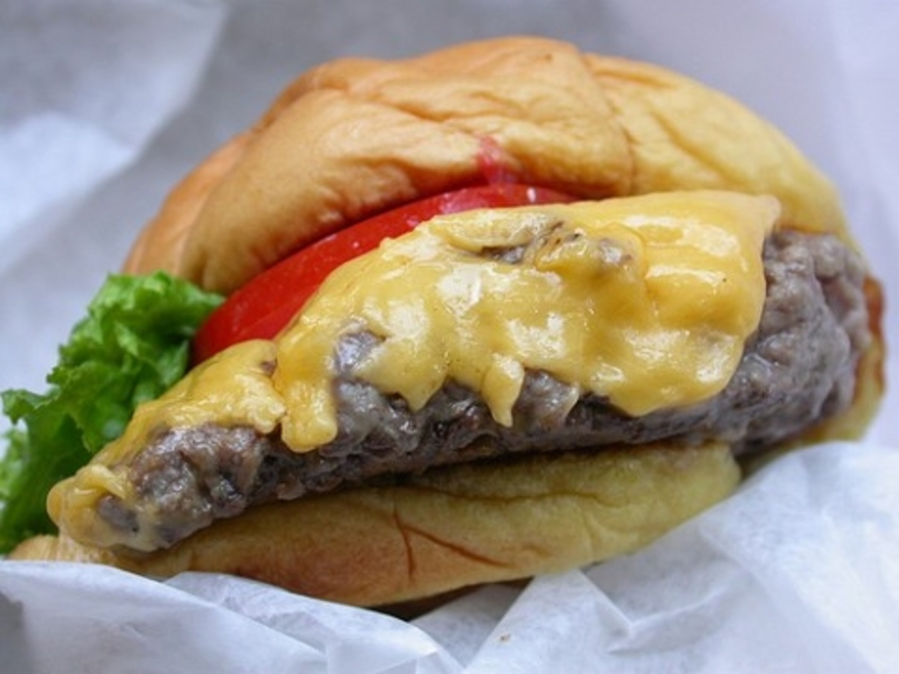 Ever since Marilyn posted about Manhattan’s Secret Burger, I’ve been meaning to offer my own love letter to New York’s Shake Shack, the burger I dream about now that I’m in D.C. Admittedly, the Shack is as much about the scene as it is the food, but the 40 minute-plus line snaking through Madison Square Park is a perfect excuse to gossip and gawk at the eclectic slice of New Yorkers queued up: brusque business-types (or the interns who cater to them), skinny-jean clad hipsters, dog walkers, the elderly, and college students galore. The outdoor burger stand is the brainchild of restauranteur Danny Meyer (of Union Square Cafe and Eleven Madison Park), and since opening in the park in 2004, the line has yet to dwindle.