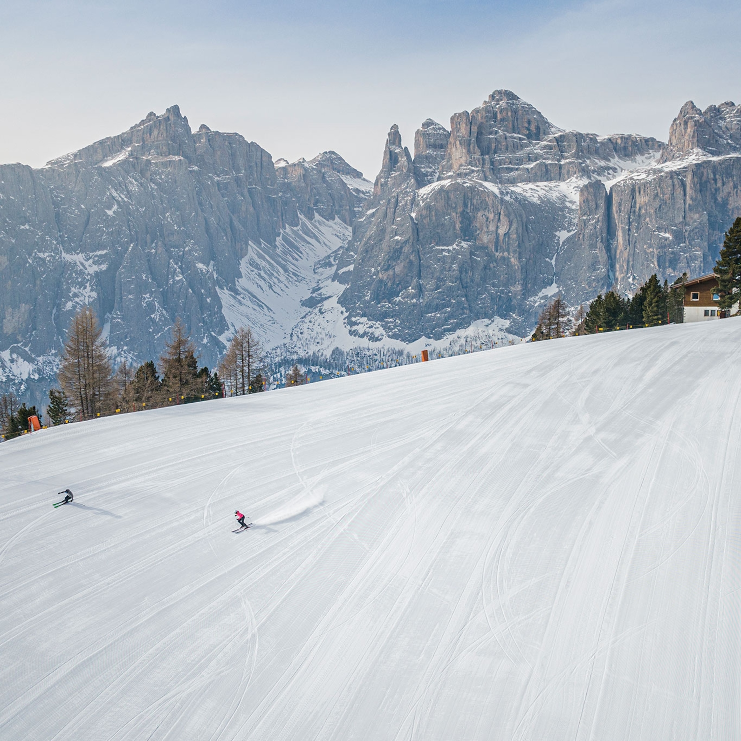 With all this terrain to cover, having a local guide is paramount. This is not your ski instructor, but a guide who handles all the logistics and knows all the slopes. All we had to focus on was skiing— instead of being glued to a map. Beyond showing us the best runs every day, my guides Carlo and Marco shared interesting tidbits about the Dolomites' history and culture as we rode up the mountain in a gondola or took a break for lunch.