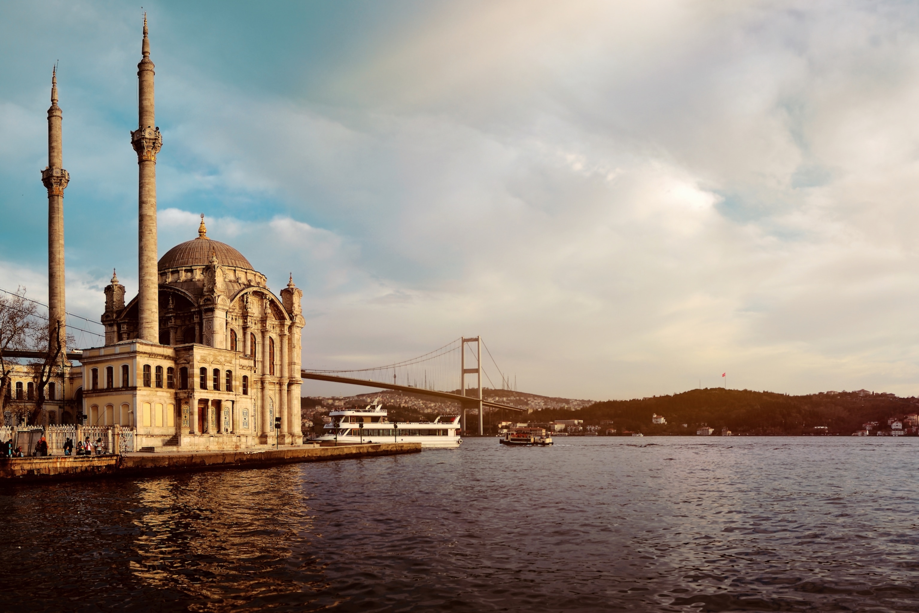 On the Ortaköy pier square, one of the most visited locations along the Bosphorus, is the Ortaköy Mosque (the Grand Imperial Mosque of Sultan Abdülmecid). On the site originally was a masjid built in 1721, that was later destroyed in an uprising. A replacement mosque was ordered by the sultan. Designed in the Neo-Baroque style, by a father-and-son architecture team, the current mosque was erected between 1853 and 1854, and still stands impressive on the water’s edge.