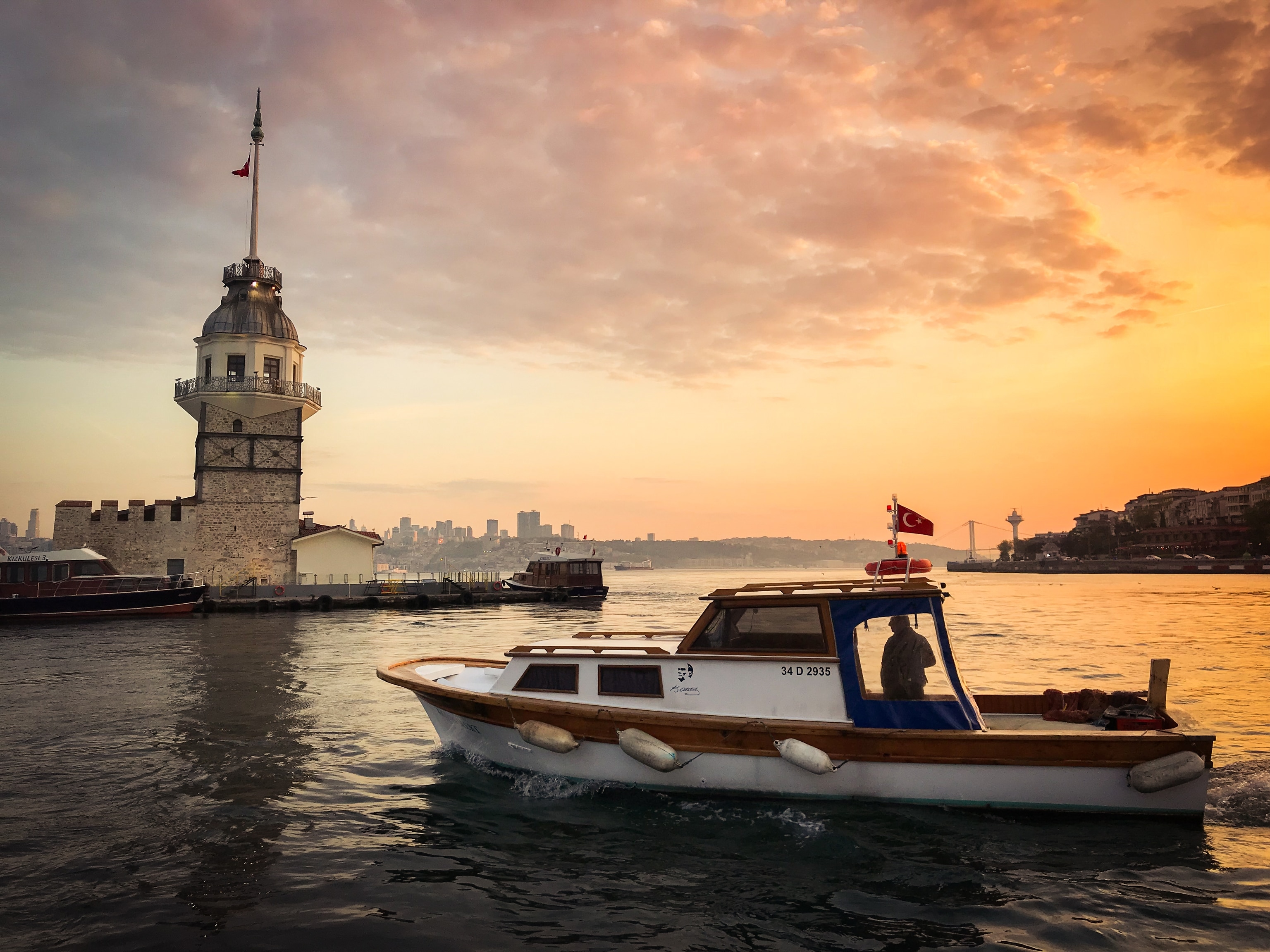 A great way to get to grips with the city is by boat. Passenger ferries traverse the 32 km (about 20 miles) strait that stretches from the Sea of Marmara to the Black Sea. It is a brilliant way to observe the differences in the east and western sides and catch vistas of the city. You can see the nine-story, circular Galata Tower, built in 1348 by the Genoese, poking out above the skyline. It was built at a time when Genoa and Venice were jostling for trade and commercial authority, and is an example of Genoa showing off its wealth and influence.