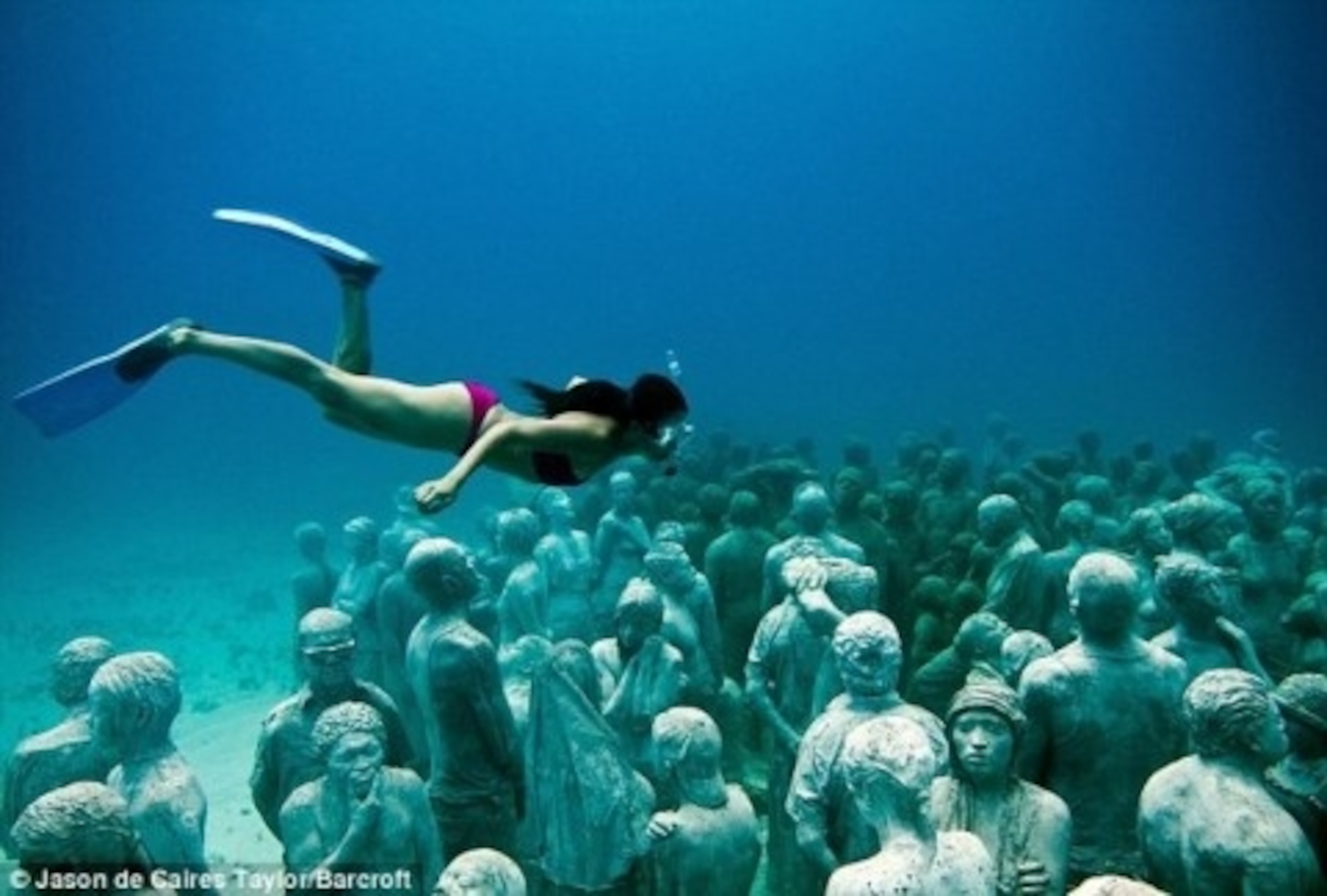 This is no ordinary reef. British artist Jason de Caires Taylor created these 400 sculptures from casts of real people, and he’s placed them on the ocean floor outside of Mexico’s Isla Mujeres National Marine Park. The work is called “The Silent Evolution,” and is part of the Museo Subacuatico de Arte (MUSA); its aim is to encourage coral growth in the waters close to Cancun.