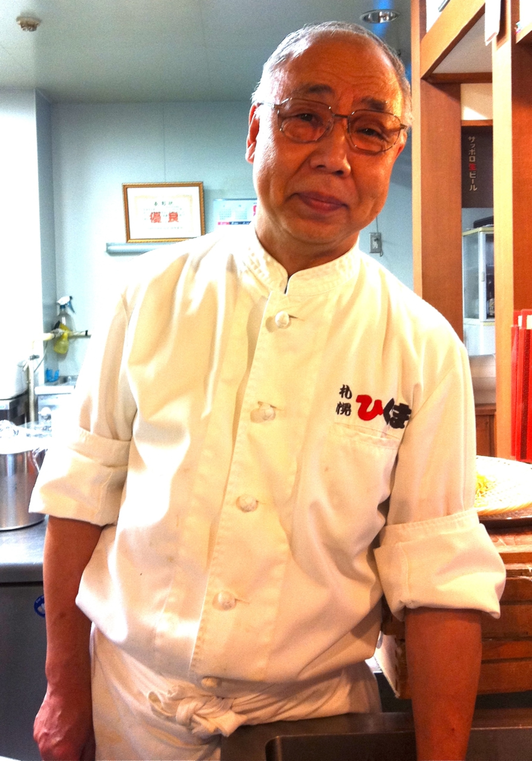 Sakae takes me to Higuma, where a ramen master makes ramen masterfully. It is something I notice about this country—there is no dabbling in Japan—no half-attempts or playing at something for the thrill of it. Whatever one pursues becomes a life pursuit—there is a kind of dedication towards perfection that I have failed to witness anywhere else in the world. Whatever it is—growing perfectly spherical melons with evenly-distributed ripeness or playing a piano sonata—the goal is to master. And at Higuma, I meet this man who has mastered ramen: Takada-san.