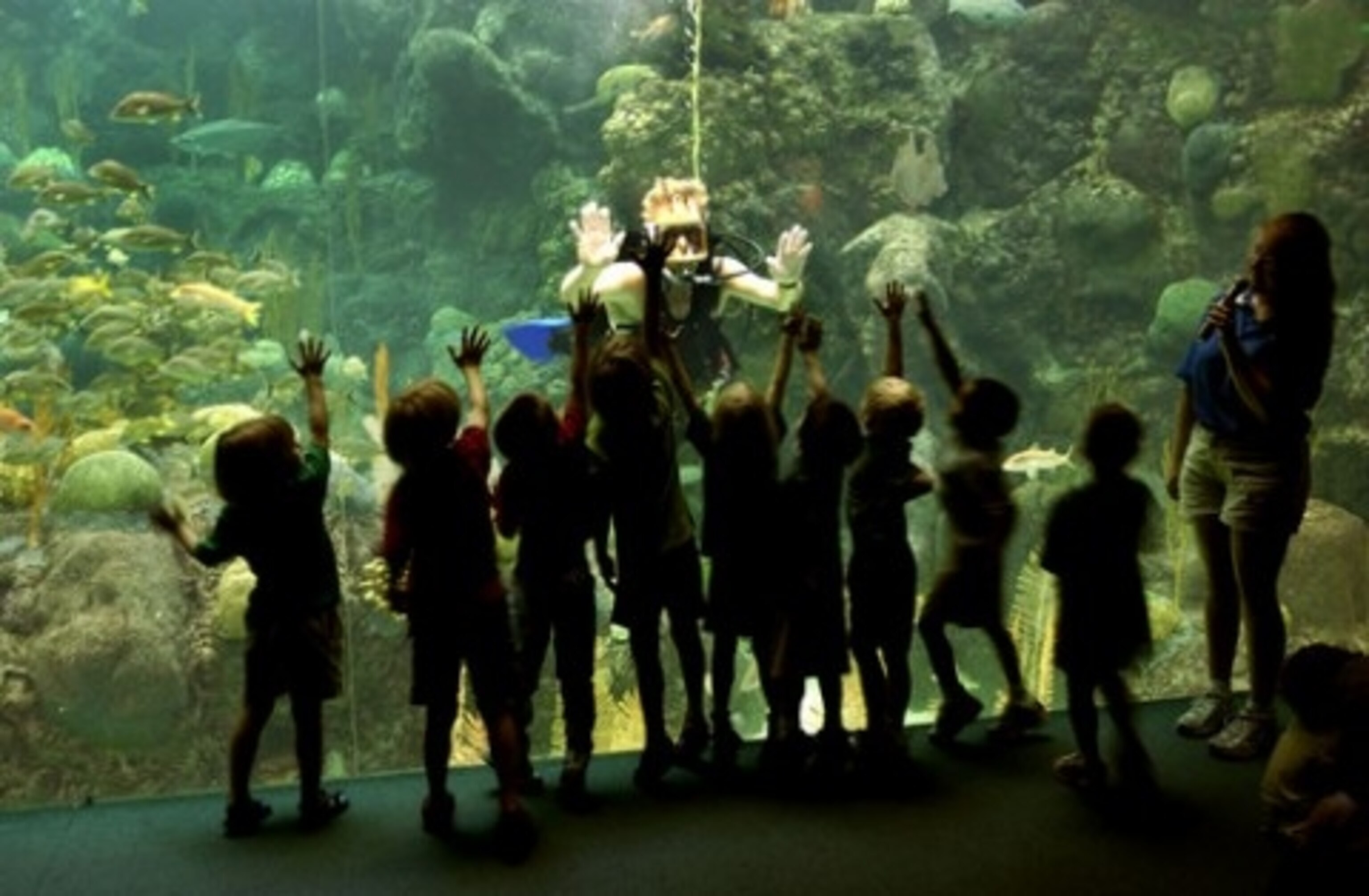 boasts 20,000 plants and animals, from both salt and fresh-water environs, as well as a million-gallon coral reef. Trained divers feed the sharks twice daily. Kids love the “Penguin Promenade” featuring African black-footed penguins.