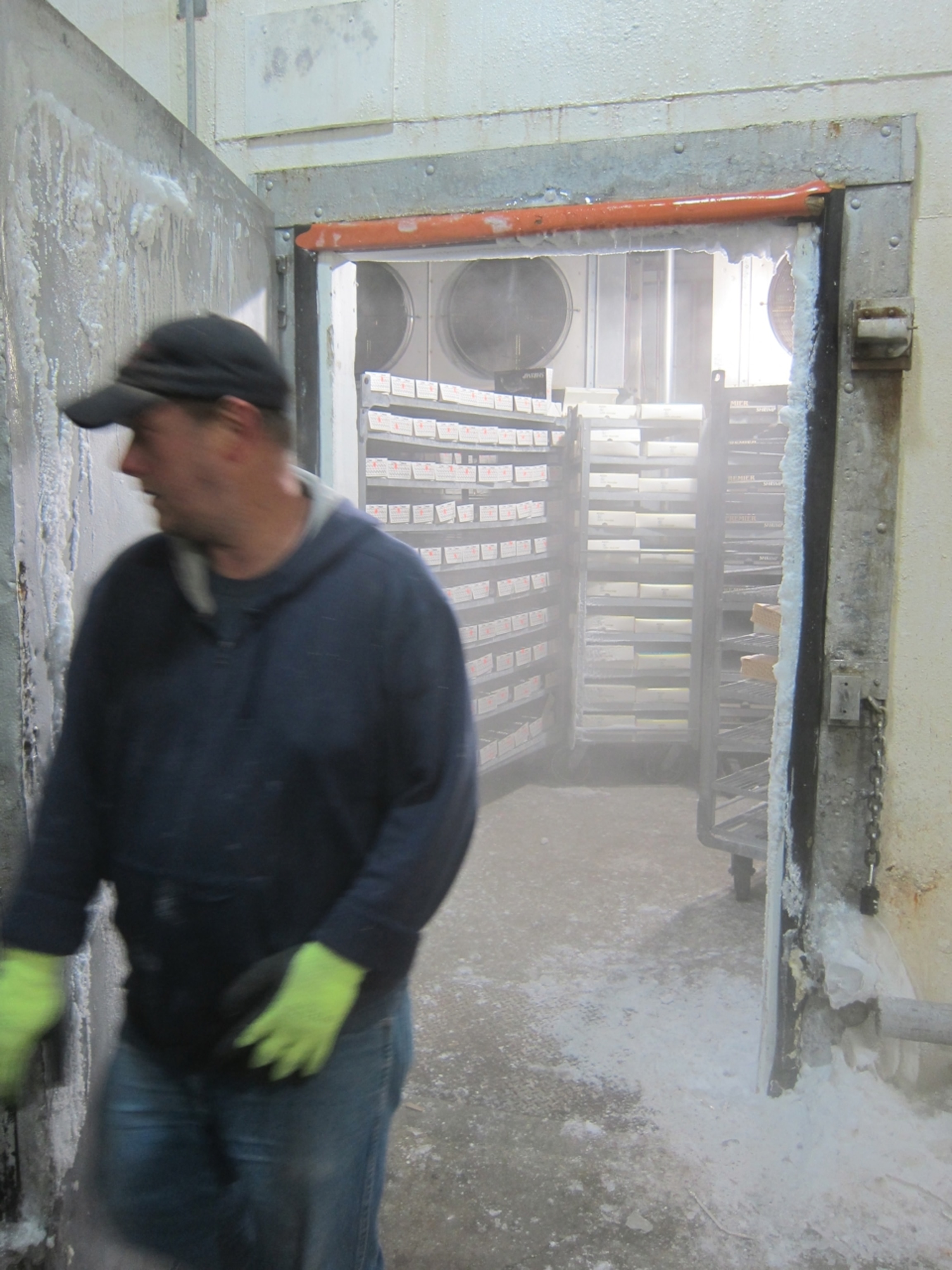 “Nope, just these,” he points to a single layer of clothing underneath his snowsuit. It’s still hot down here in Louisiana. For guys like Coty, a job in the freezer is a welcome break from heat.
