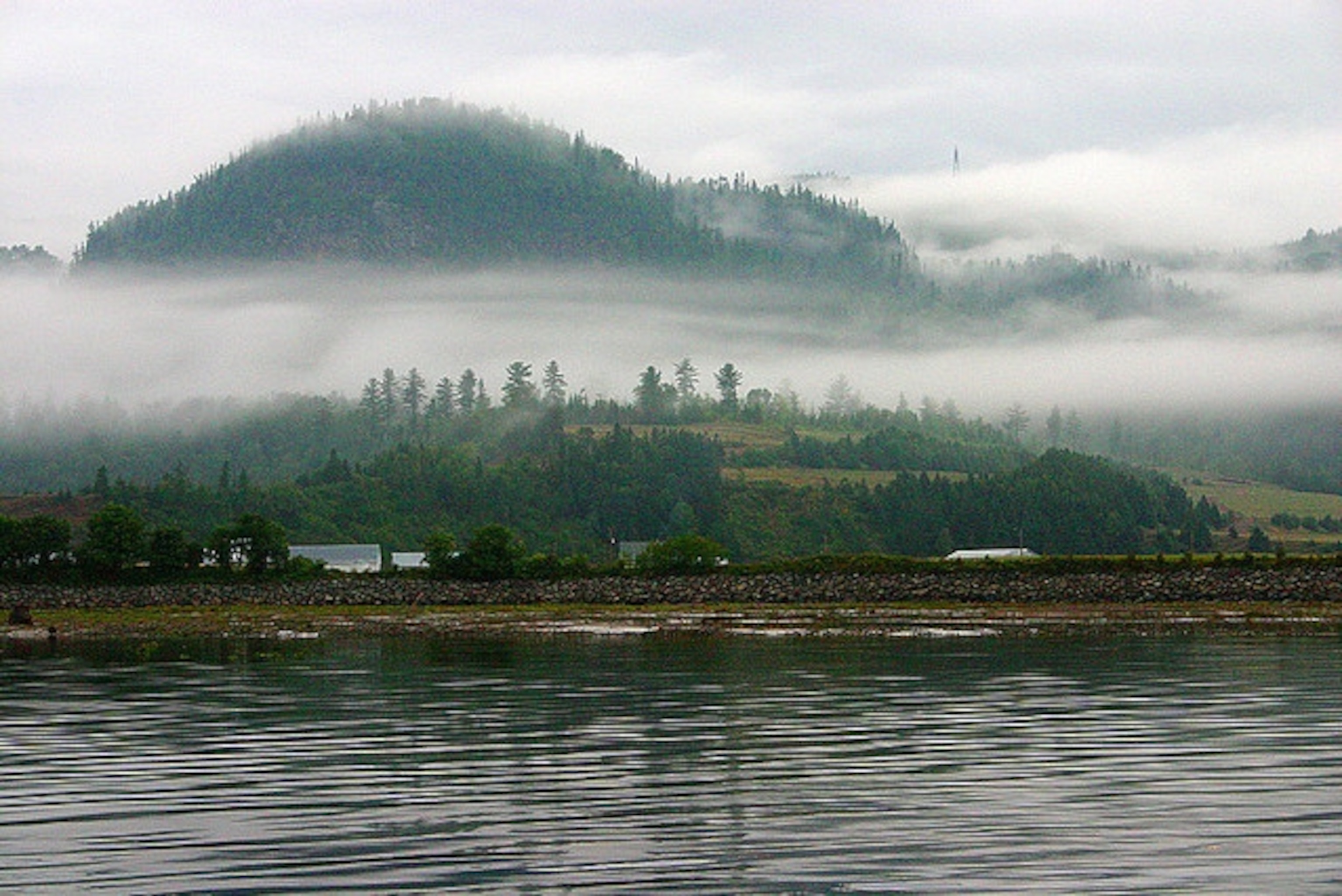 From afar, L’Anse-Saint-Jean looks like the kind of bucolic scene you learn to oil paint on Saturday morning television. In the distance stand the majestic rock cliffs that border the Saguenay fjord–one of the longest fjords in the world. In the middle ground are the silver-blue waters of the fjord itself disturbed only by a tiny hump of an island named St. Jean. Spotted dairy cows graze between a marshy shoreline and the surrounding hills of dark green pines. A scattered chain of century-old farmhouses follows the dusty road into the foreground with its requisite steeple, happy front yard flowers spilling over white picket fences and a babbling brook to boot. Above the rushing water sits the finishing touch: an old-fashioned covered bridge made entirely of wood, Le Pont du Faubourg.