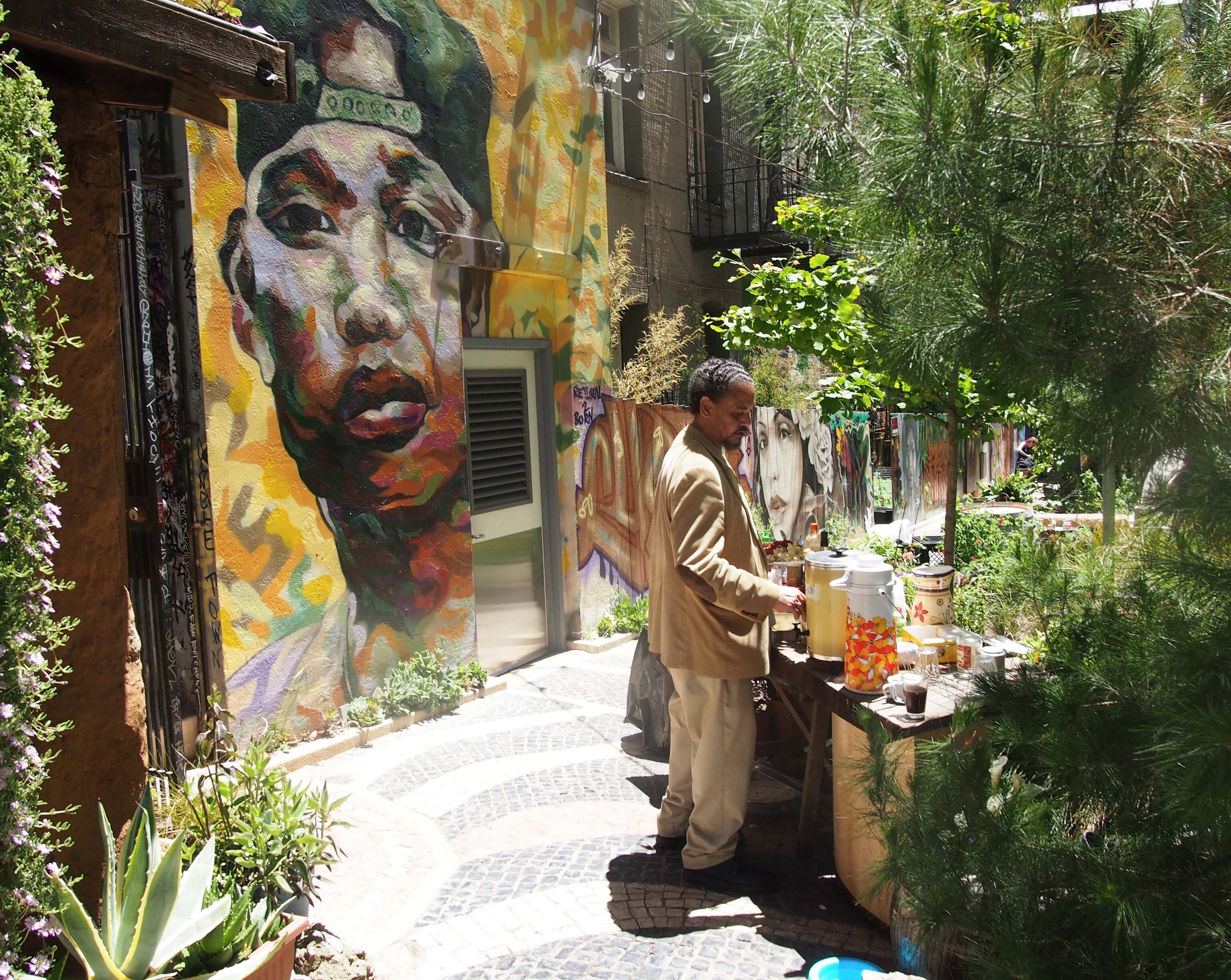 I started snapping photos of the impressive iron entryway and the striking murals that climbed the walls of the surrounding buildings, but was soon overwhelmed by people welcoming me in to have some food, to paint, to come share my stories in the “story house,” to garden.