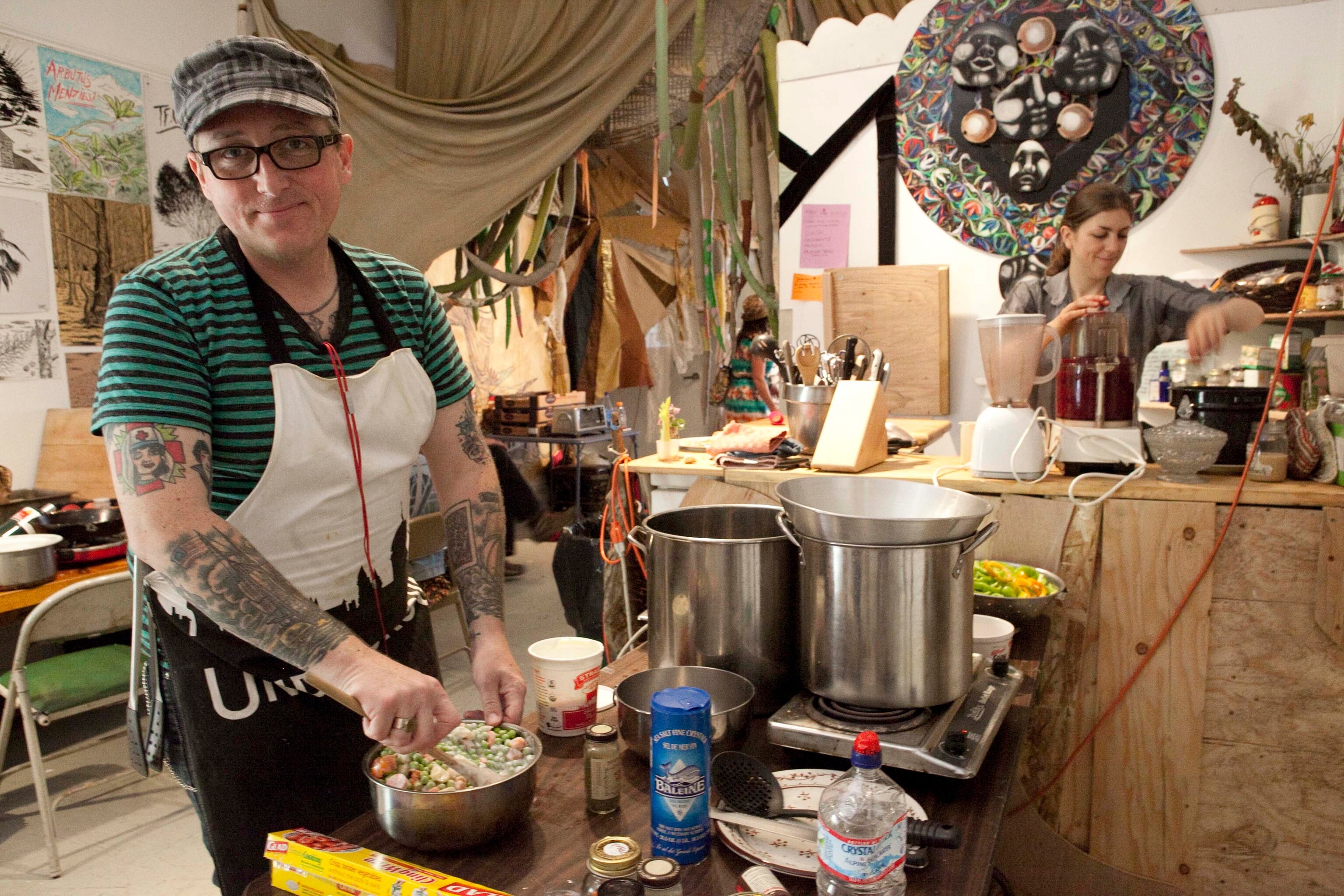 “Uh, I don’t think they know,” he said as he stirred together a pea and carrot concoction, “but we’re feeding and caring for people and making this space better than it was before. It’s hard to argue with that.”