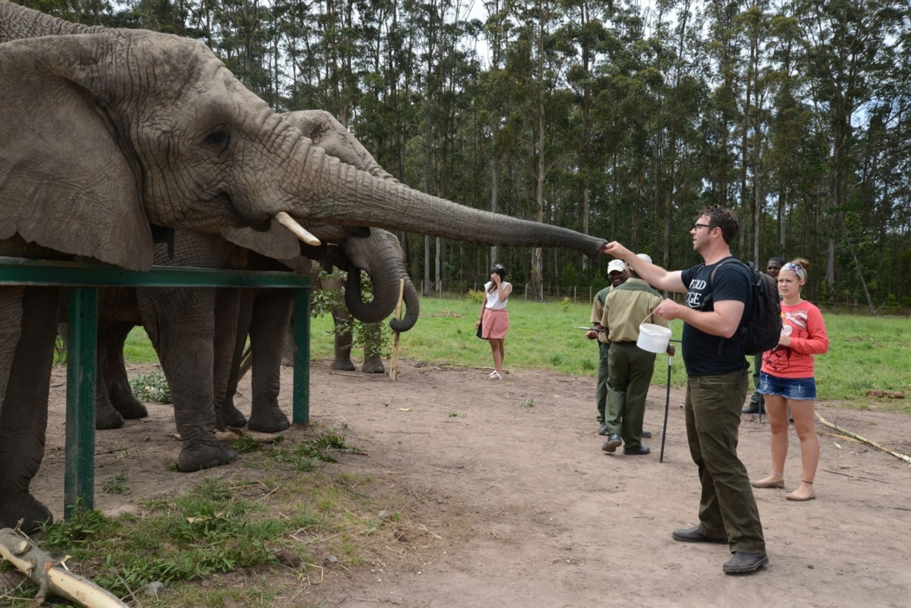 Indeed, I have never felt so incredibly close to such an amazing (and giant) beast as I did in Knysna, standing next to little boy Mashudu (who’s the size of a Nissan), or big mamma Sally (who’s the size of a milk truck). Even better, there were children all around. Seeing as so many national parks and game reserves have strict age restrictions for safaris, it was nice that children had the chance to come and interact so closely to the elephants. This is only possible because these particular elephants have been so carefully and painstakingly trained, so that they are not afraid or nervous around humans. It’s the reason why it’s safe to stand next to their gigantic legs, and why it was safe for me to take a phone picture within an inch of the elephant’s trunk.