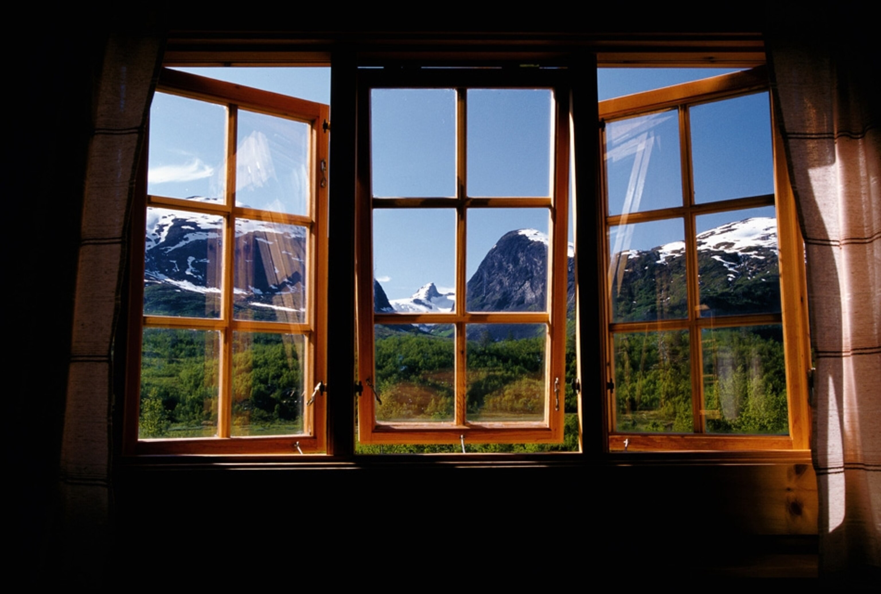 The photo above was taken at the end of a long, strenuous day of hiking in the Jotunheimen mountains of Norway. I was photographing a story about a network of mountain huts, and had collapsed, exhausted into a well-placed chair. After a brief nap, I opened my eyes in surprise to this scene, a photographic gift from the mountains.