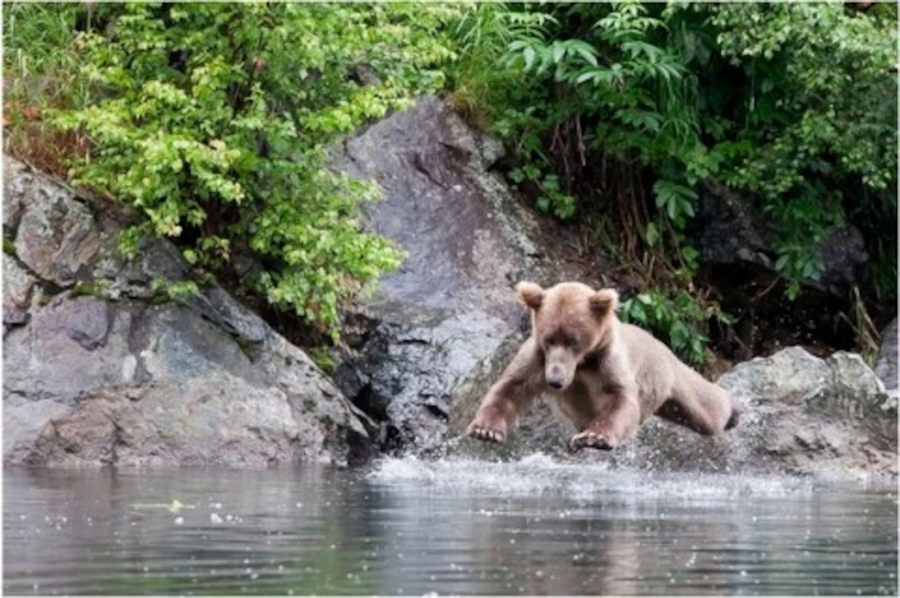 Last year, Eric Kruszewski was the winner of National Geographic Expeditions’ “Expedition Moments” photo contest, open to those who have traveled with Expeditions and submitted photograph from their journeys. Eric won a trip to Alaska’s Inside Passage, and his photos from that visit are now up on their Field Notes blog. I’m particularly fond of this shot of a bear, leaping toward its dinner (and it’s giving me flashbacks).