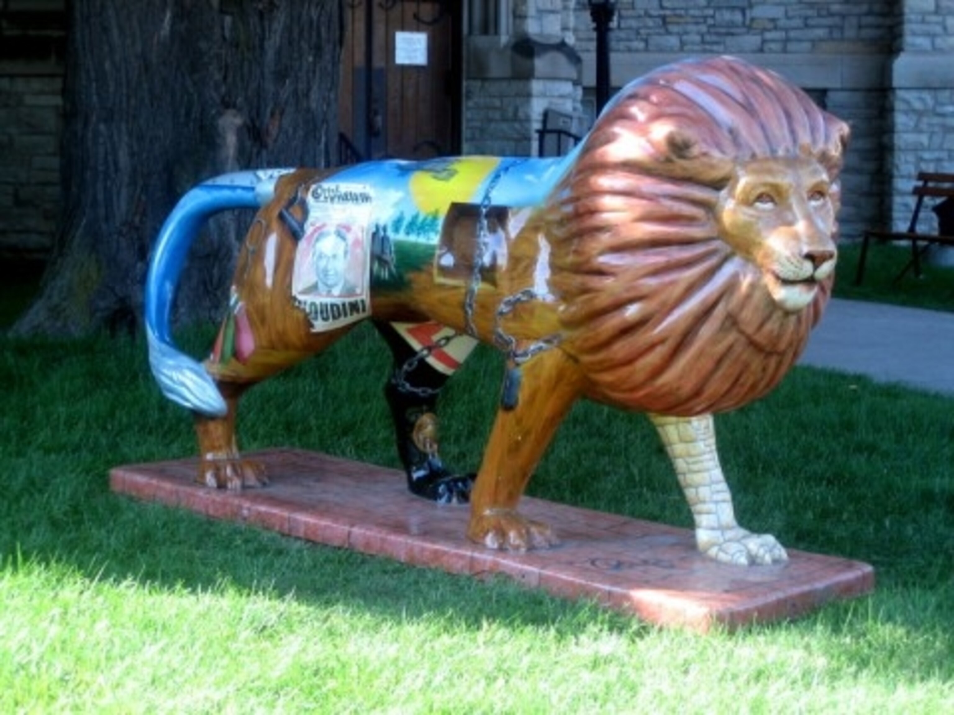 The Houdini-themed fiberglass “Metamorph Lion” stands guard in front of Appleton’s History Museum.