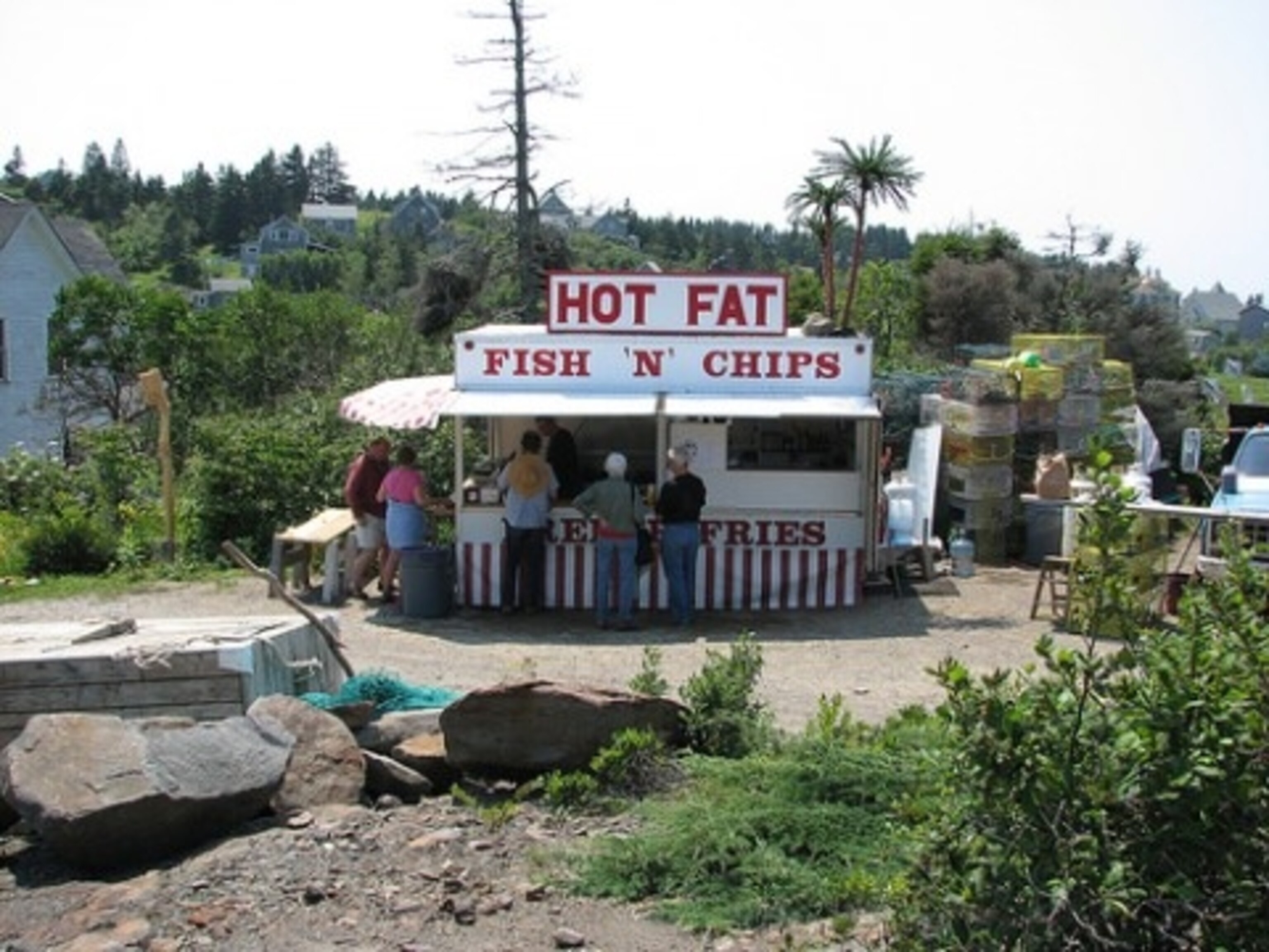 Top places to actually eat lobster are Miller’s Lobster, the Dip Net, and Conte’s on the working waterfront in Rockland, where I could have sworn the sea captains of yore still hang out. Conte’s daily menu is written on a very long scroll of white paper that hangs at the door as you enter, so you order before you go to your table.