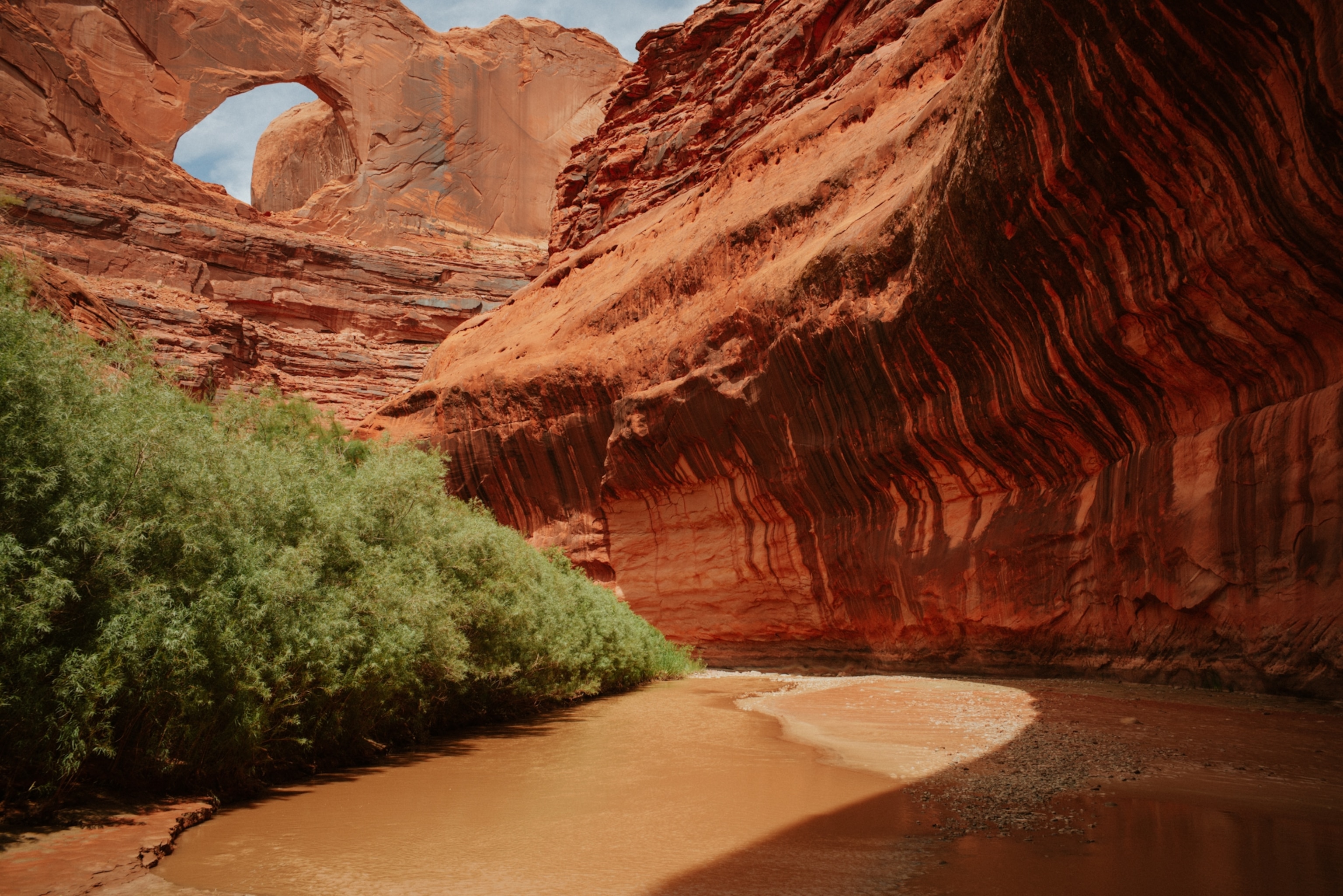 A good alternative to the popular Wave trail, the three-mile round-trip Cathedral Wash Trail in Glen Canyon National Recreation Area, next to Vermillion Cliffs, includes scrambling through a small canyon before ending at the Colorado River. Canyon debris created Cathedral Wash Rapid. The canyon’s unique geology includes 270-million-year-old Kaibab Limestone and Toroweap Formations composed of gypsum, shale, and sandstone. Keep your eyes peeled for marine fossils of brachiopods, corals, and mollusks. Follow the Lees Ferry access road 1.3 miles to get to the trailhead.