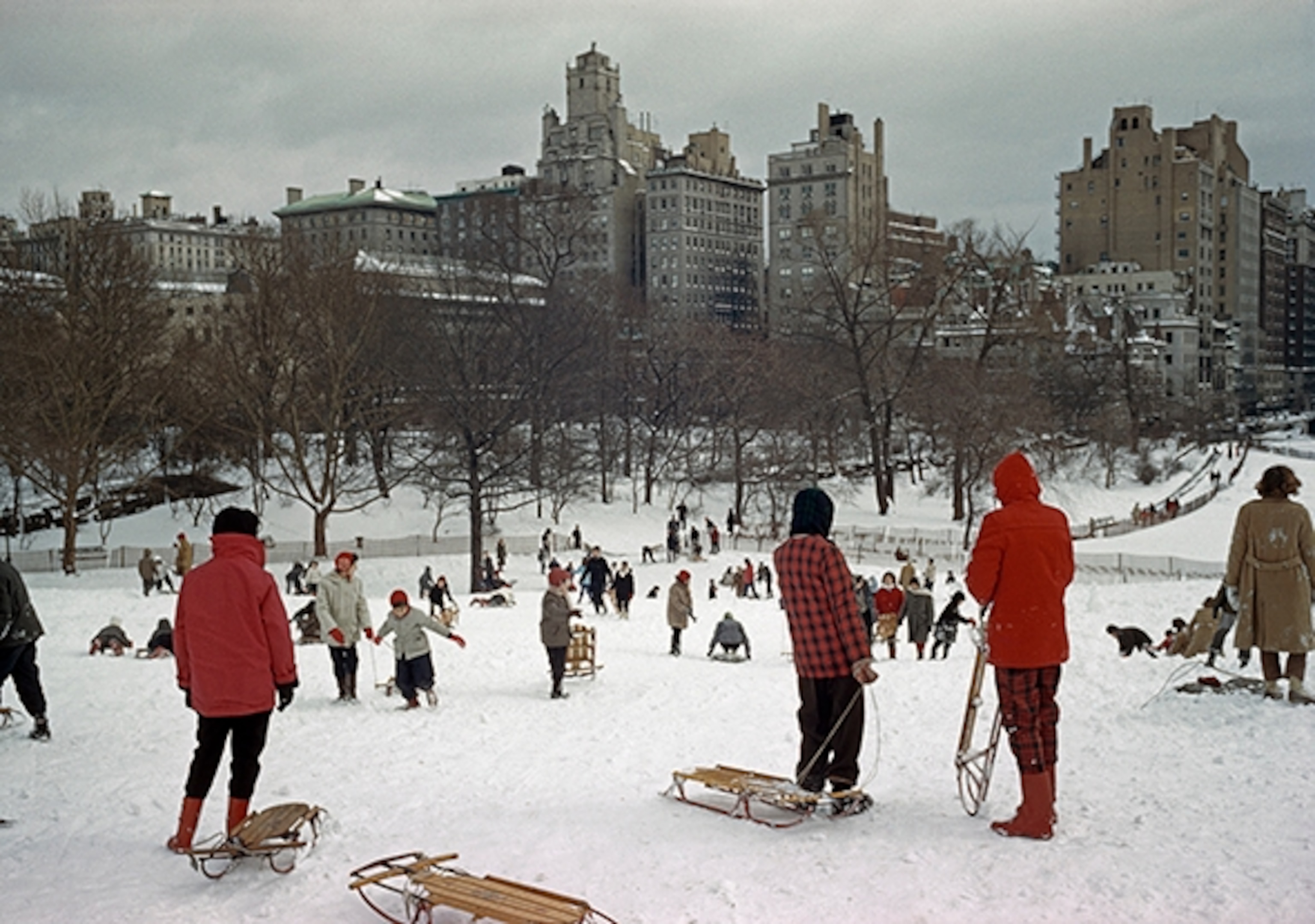 - Cedar Hill, where this photograph was captured, remains one of Central Park’s best and most beloved sledding spots. Pilgrim Hill, just north of the 72nd Street entrance, is another favorite for downhill racers.