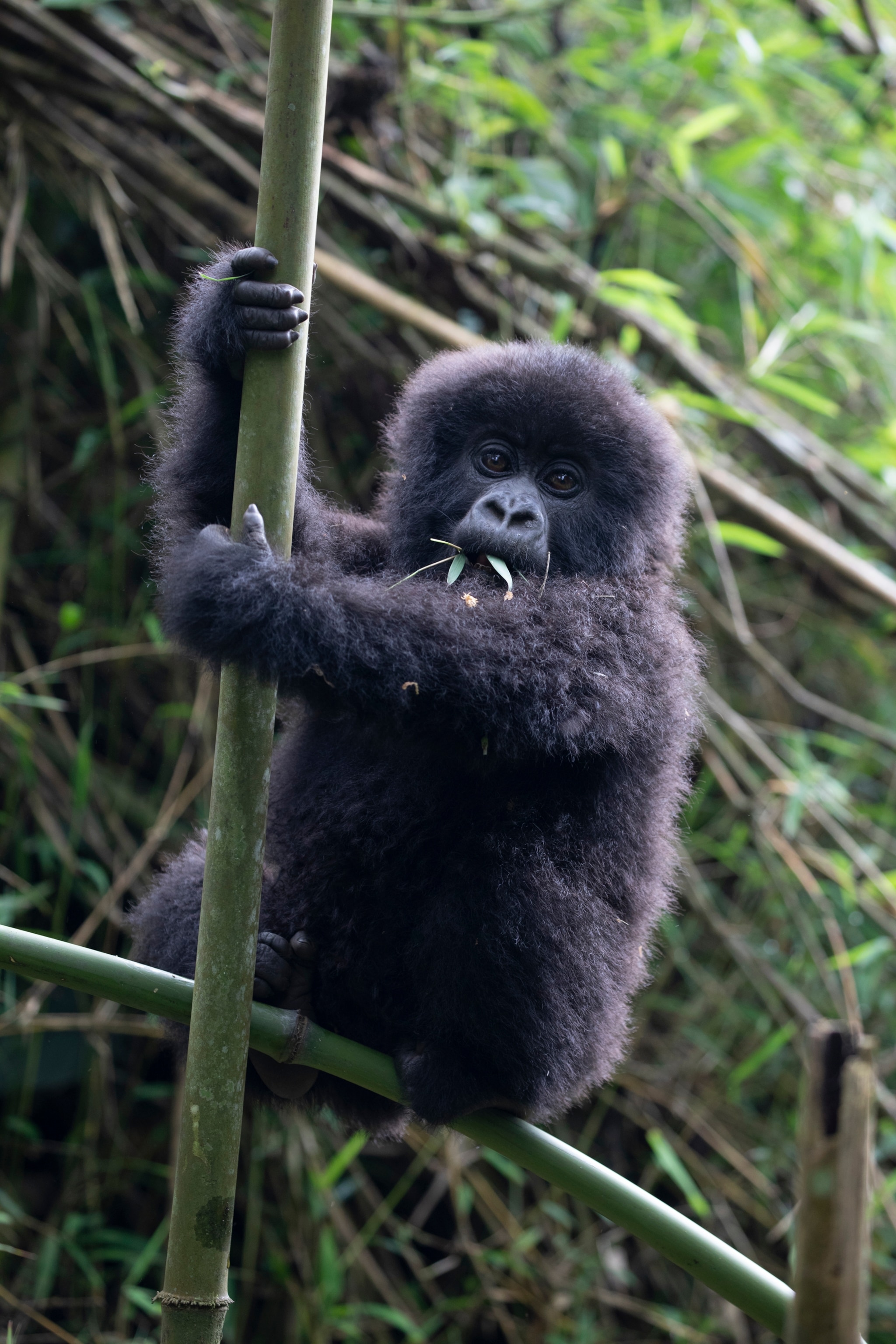 Intego, a 15-month old baby mountain gorilla named by National Geographic readers during the Kwita Izina (gorilla naming ceremony) this year, hangs out next to her mother Icyamamare in Volcanoes National Park. Intego means “purpose.” The two are members of the Kwitonda family – a group of 34 individuals that have lived in Rwanda since 2004.