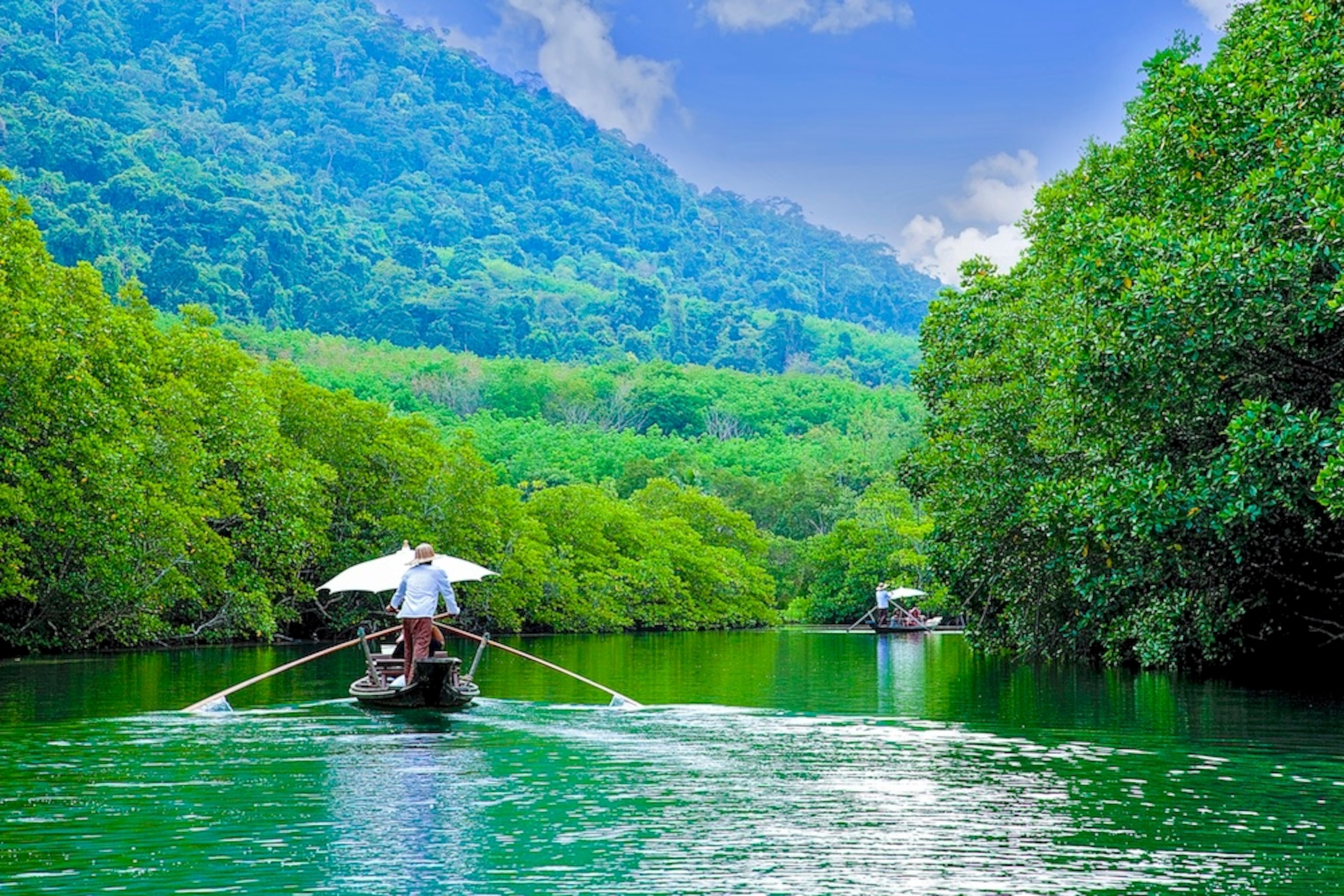 Visitors can explore the rich biodiversity and conservation areas on this green tour route via energy-efficient means of travel like trekking, cycling along community roads, riding in the sidecar of a saleng (an adapted motorbike), strolling through fruit orchards, cruising along canals, and exploring mangrove forests. Tourists can participate in a variety of folk activities, such as weaving palm leaf hats, building check dams with local materials, sifting for red gems, and enjoying natural spas. Travelers will gain an appreciation for conservation as they learn about the self-sufficient lifestyle of Trat’s people and how they adapt natural resources for beneficial uses.