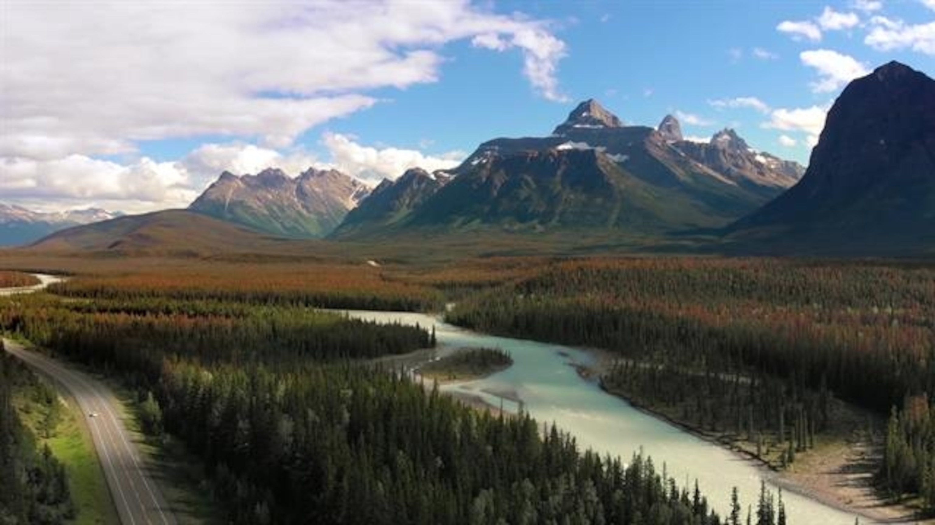 Driving along the magnificent Icefields Parkway, Jasper National Park, Alberta
