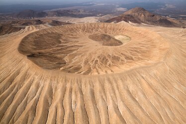 To really appreciate the epic majesty of the desert, intrepid explorers take to the air. From the sky you can see the landscape in a totally different way that brings a powerful new perspective to features like Jabal Abyad (White Mountain). This is Saudi Arabia’s largest volcano, towering more than 2,000 meters above the wildly beautiful landscape of the Harrat Khaybar lava field. White volcanic ash deposits from the volcano’s silica-rich lava create the illusion of a snow-peaked mountain. Seen from the air, Jabal Abyad’s cavernous crater offers a glimpse into the violent volcanic activity that has helped shape the region.